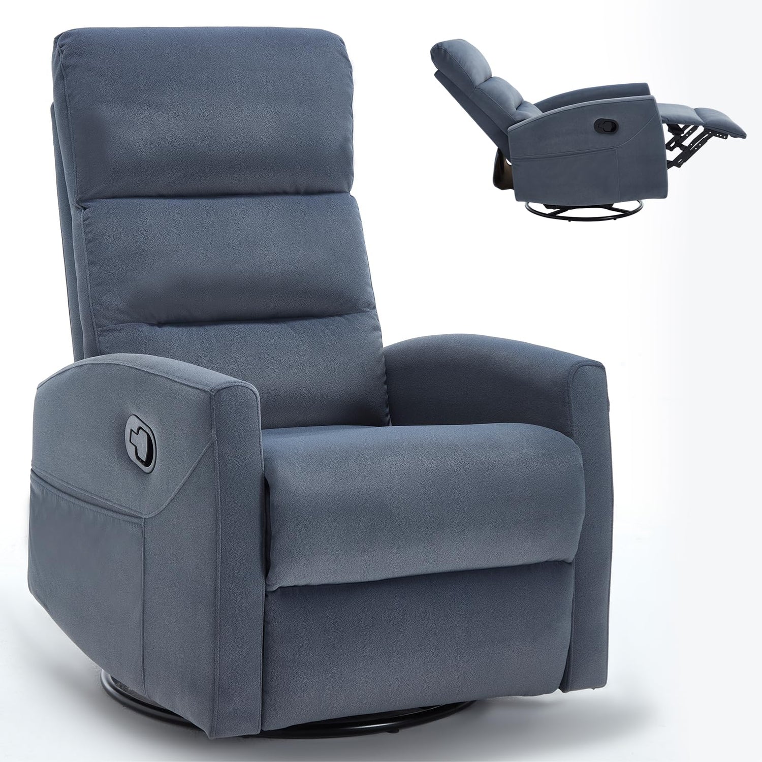 - [High-Quality Materials] Upholstered in breathable, easy-clean fabric and padded with high-density foam, this swivel recliner chair offers plush comfort that rebounds quickly. Just pat the cushions or wait 5 minutes after unboxing for full loft restoration. Perfect for recliner chairs for adults who value both comfortable and practicality.