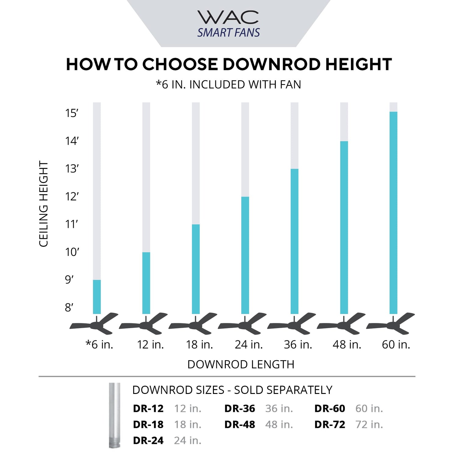 - WAC Ceiling Fan Downrods should only be used with WAC Ceiling Fans. Our downrods are manufactured to work with WAC fans only, failure to use with a WAC fan only can result in damage or injury. WAC downrods are 3/4 in. outter diameter and can be used to extend your WAC ceiling fan height.