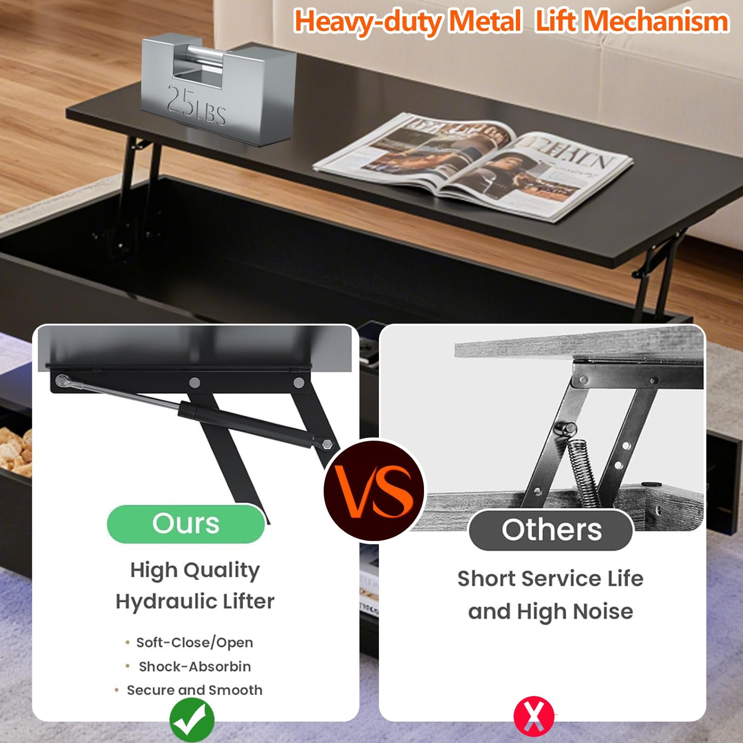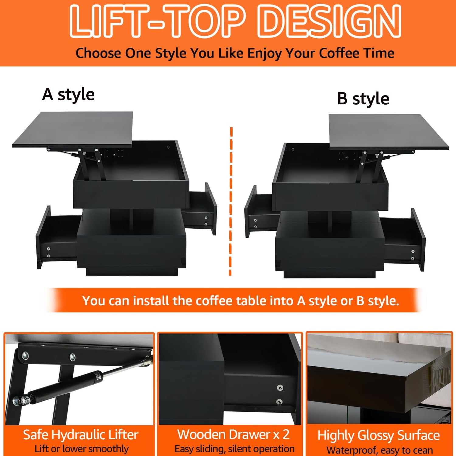 - 【Lift-Top Table for Comfortable Work & Leisure】 This 39.37 inch lift-top coffee table features an elevated desktop design that allows you to comfortably eat, work, study, or game from your sofa without bending forward. The smooth lifting mechanism keeps the tabletop stable and secure whether raised or lowered, making it ideal for modern living rooms and small apartment layouts.
