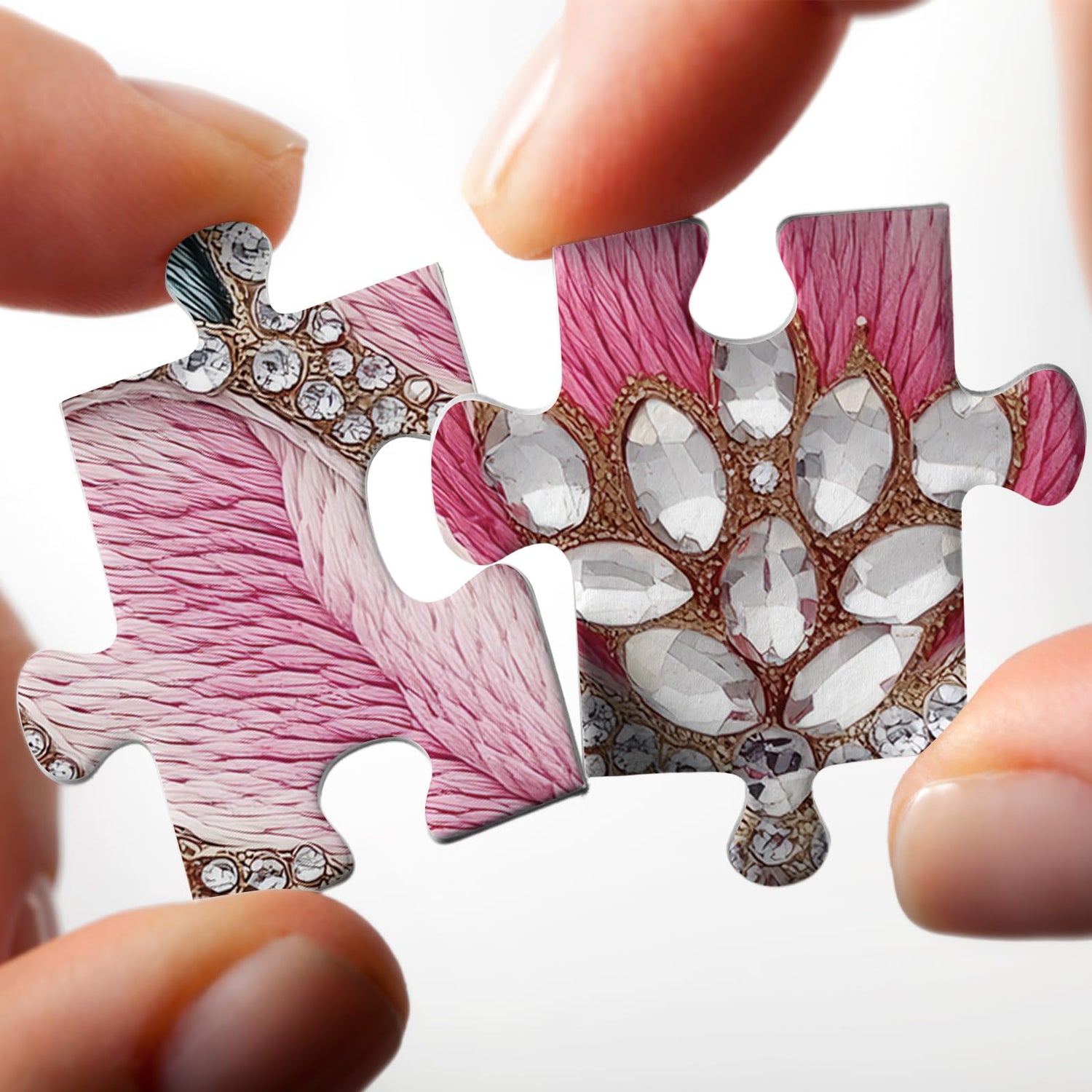 - Lotus Radiance: Step into a world of elegance with this 1,000-piece jigsaw puzzle featuring a delicate lotus flower, intricately embroidered with sparkling jewels. The vibrant petals and shimmering accents create a breathtaking masterpiece that brings together the timeless beauty of nature and the artistry of jewelry embroidery for puzzle enthusiasts who appreciate refined craftsmanship and the serene allure of floral designs