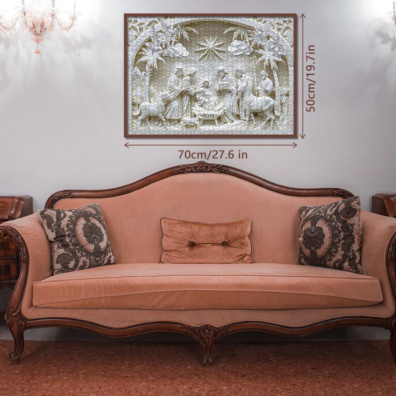 3D Nativity Scene Sculpture Puzzles for Adults 1000 Pieces, Christian Jesus Religious Bible Jigsaw Puzzles, Faith Catholic Cross Puzzle