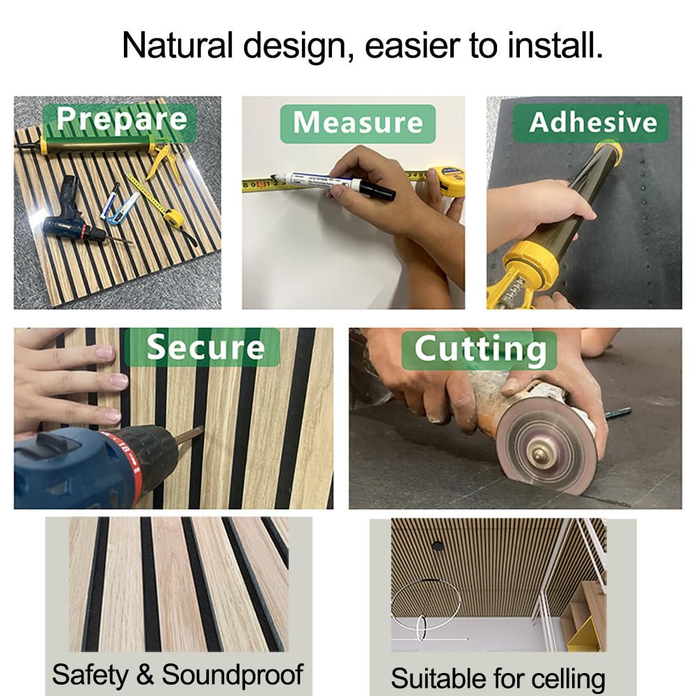 - Easy to Install: Our Wood Slat Paneling are designed to be lightweight and easy to handle, allowing for a hassle-free installation process. With simple tools and adhesive, our Slat Acoustic Panels can be quickly and efficiently mounted on walls, saving your time and effort.