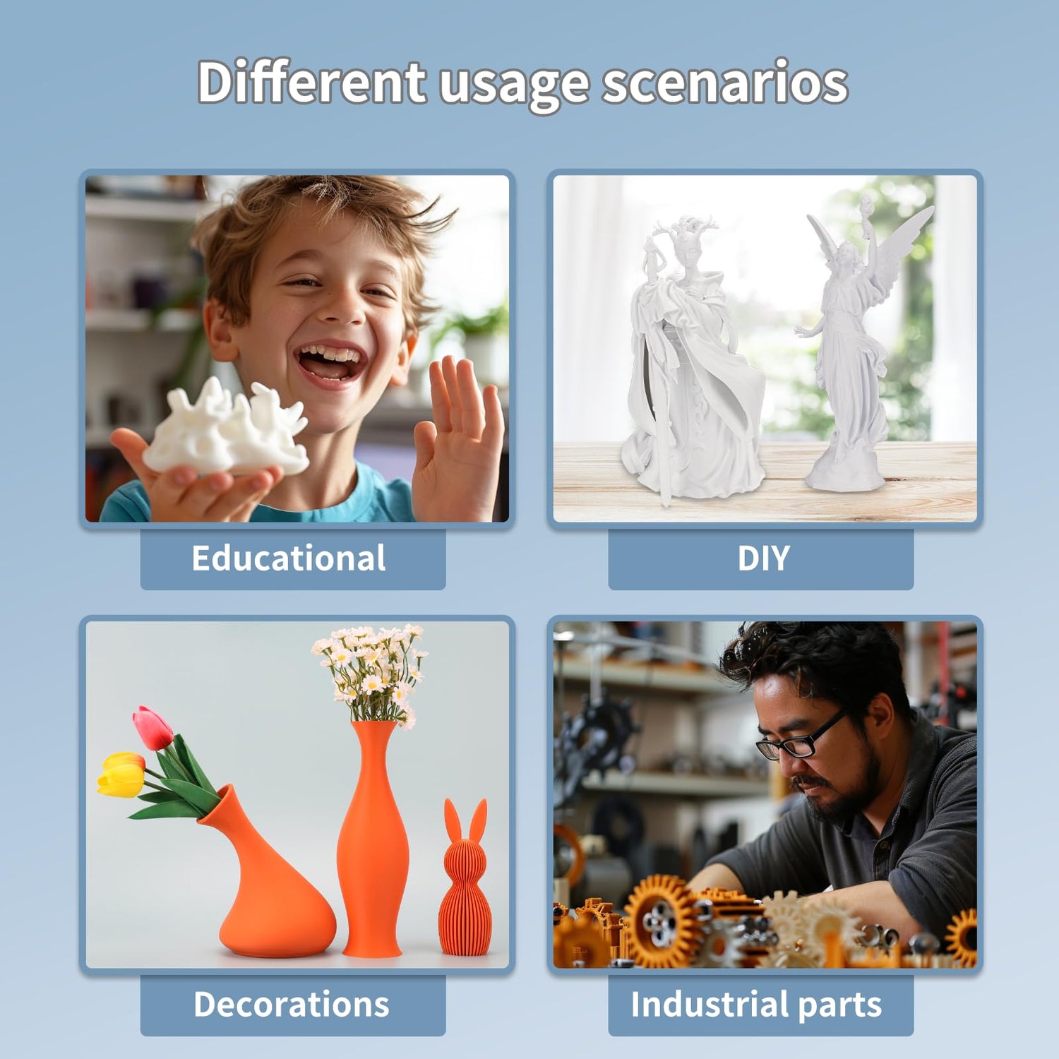 - 【High Compatibility】Compatible with Most of FDM 3D Printers, such as:Bambu Lab P1P /X1, AnkerMake M5, Voron 2.4, Raise3D, Prusa, Creality Ender 3 and Ender 7. Recommended Printing Parameters:Printing Temperature: 190-230℃ (Recommended Temperature 215℃) Bed Temperature: 45-60°C Fan Speed: 100% Recommended Printing Speed: 40-300mm/s.