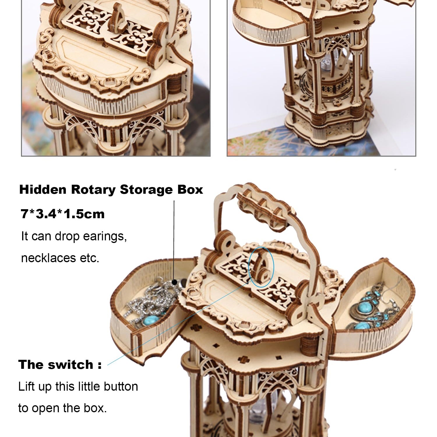 - ★ 【More Than 3D Puzzles】: This models for adults to build is not only a 3D wooden puzzle, but also a classically sophisticated desk decor and a night light with a warm glow(Reminder: you need to prepare a button battery ).Rotate the top circle, and the secret storage will expose itself. You can keep rings or small items in it to surprise your love. It also has a sturdy handle to carry or hang.