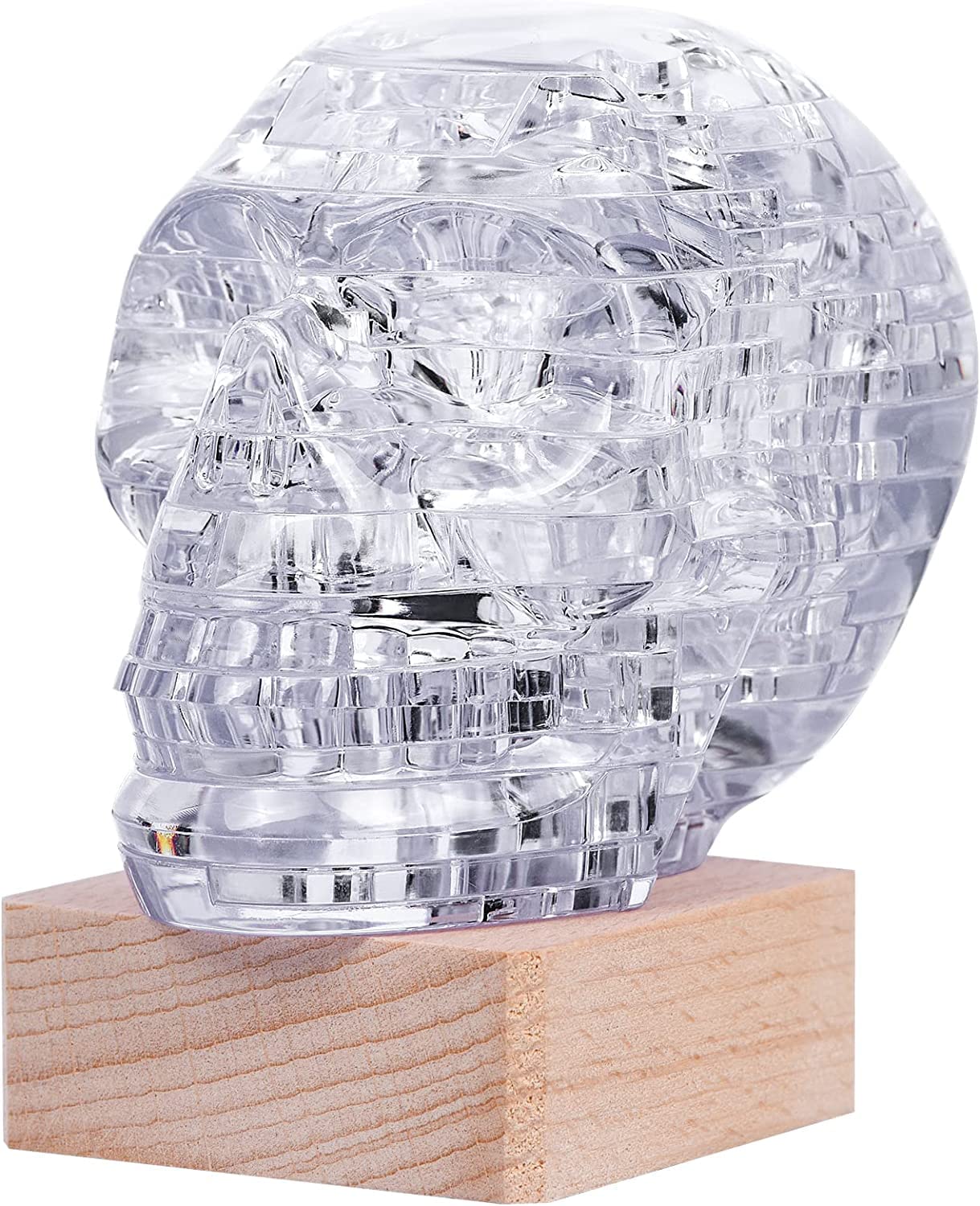 3D Skull Crystal Puzzle, 3D Puzzle Crystal Assembly Brain Teaser with Light-Up Wood Base, Plastic Crystal Puzzle, Fun Model Toy Gift Decoration for Adults & Kids Age 14 and Up, Clear, 49 Pieces