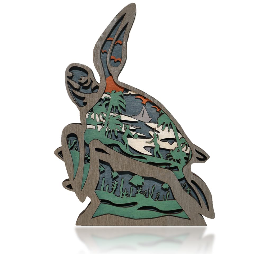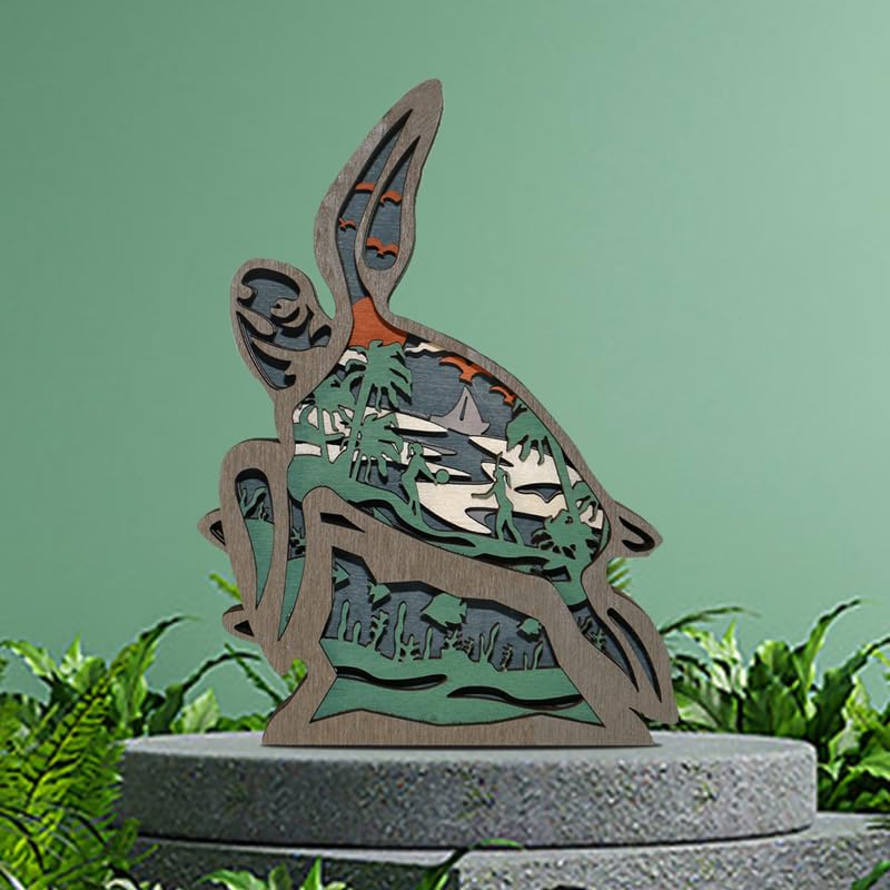 Multi-Layered Vivid Storytelling: This stunning 3D sea turtle art piece is meticulously crafted from multiple layers of wood. The detailed tropical island scene within the turtle's shell evokes a sense of tranquility and wanderlust.The interplay of light and shadow created by the layered design adds to its visual depth and intrigue.