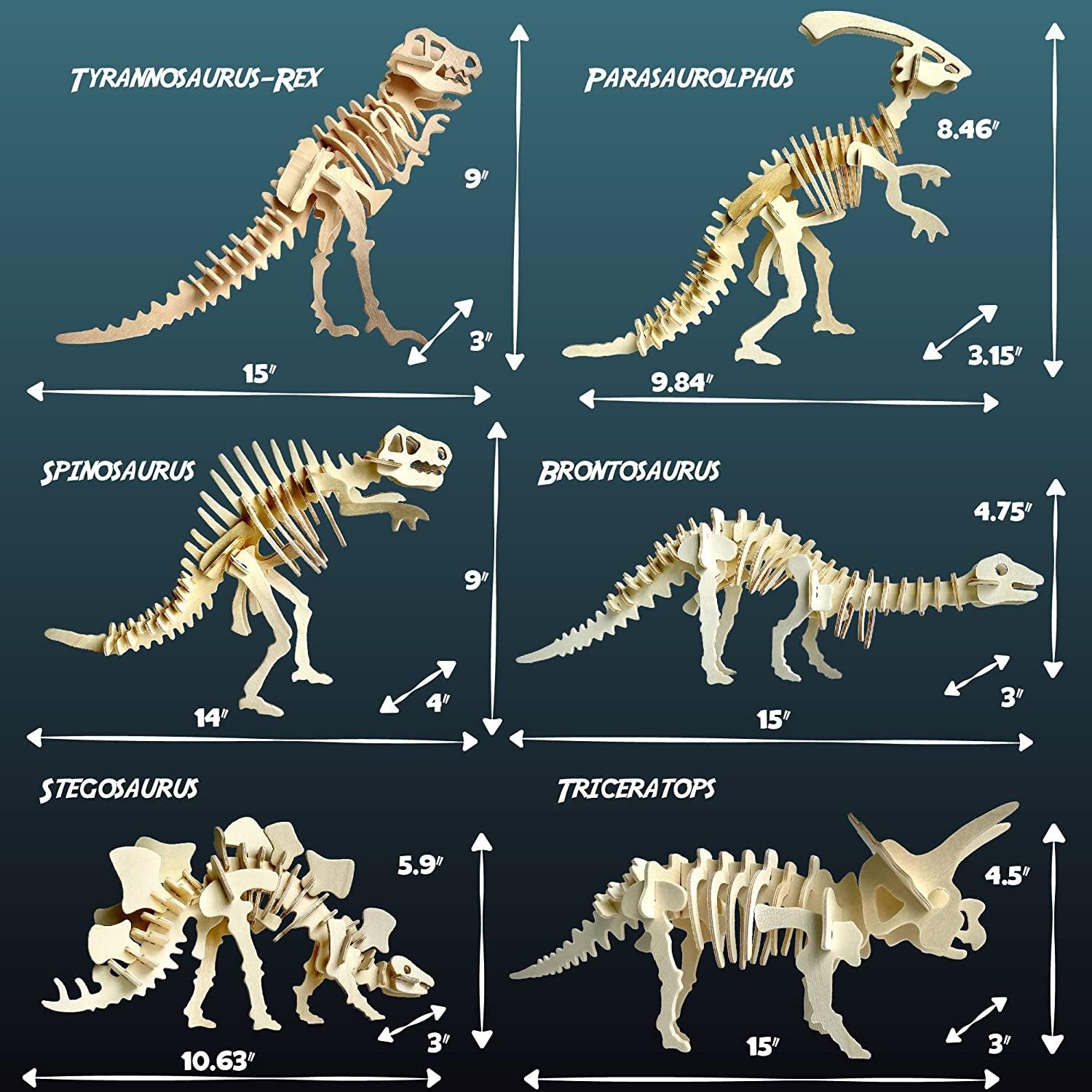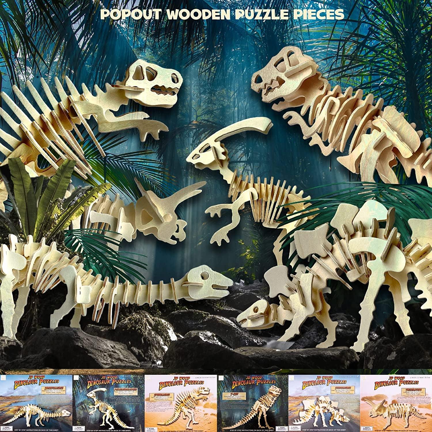 3D Wooden Dinosaur Puzzle Kit - Build 6 Unique Dino Models for Kids