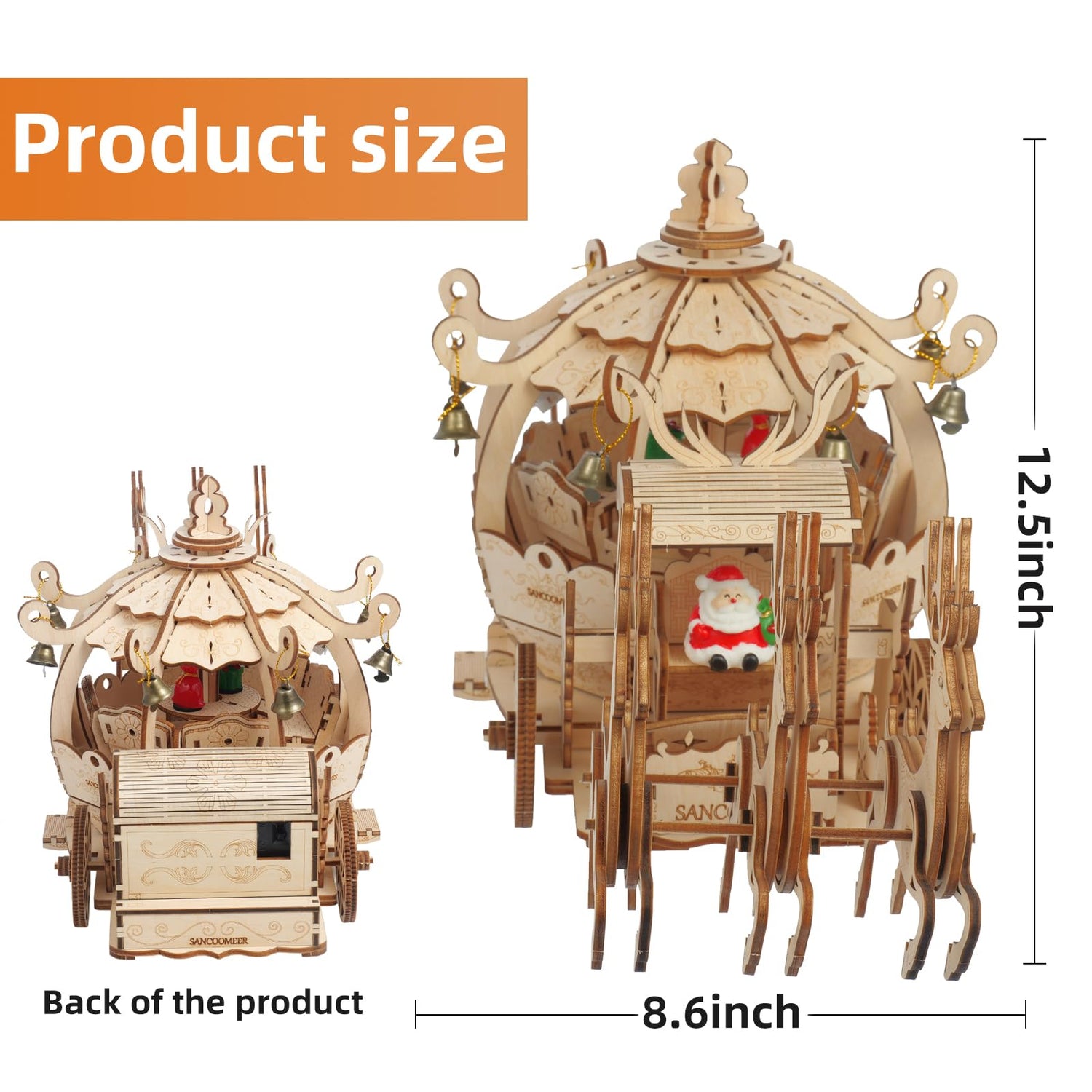 - 【Running Pumpkin Car Model】: This uniquely designed running pumpkin car is powered by a battery and can avoid mechanical operation. Driven by three elk into the distant night sky, carrying gifts and dreams to distant places, the Pumpkin Cart adds a unique touch to any room. Cool and attractive wooden puzzles for parents and children to assemble together, allowing you to enjoy parent-child time.