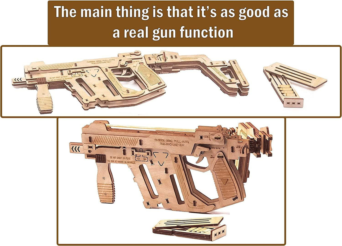 3D Wooden Rubber Band Machine Gun Puzzle DIY Craft Kit for All Ages