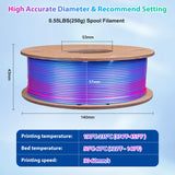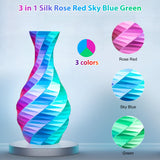 - TRI-COLORS COEXTRUDED FILAMENT: Different from normal or gradient filaments, every inch of this silk PLA filament is made of three colors. You can see three different colors of rose red, sky blue and green at different angles. Three colors are integrated in the silk PLA filament, and multi-color printing can realize three colors in one model. Printing will be full of surprises as different models will present different effects.