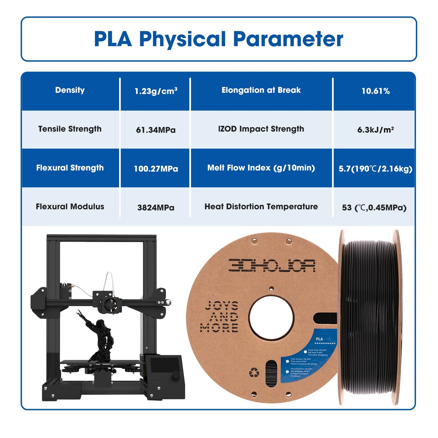 - 【High-Speed PLA Filament】3DHoJor PLA 1.75mm Filament allowing for up to 40-250mm/s fast printing speed. Printing efficiency can be increased by 300% with high speed 3D printers. You can complete the projects quickly without compromising on quality.