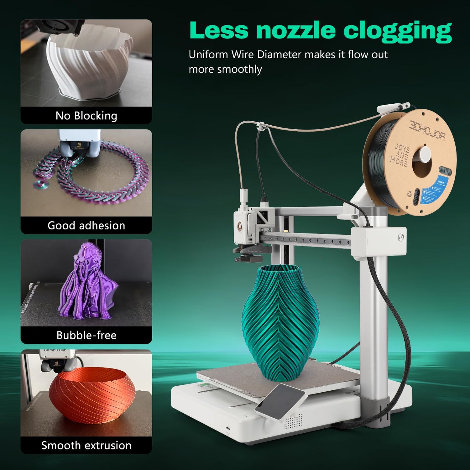 - 【Tangle-Free, Neatly Wound】: more resilient than traditional PLA, not easy to damage. Strict manual inspection ensures the neatness and easy feed of PLA filament winding. Vacuum-sealing guarantees moisture-free printing, eliminating clogs and bubbles, which increase your printing success rate.