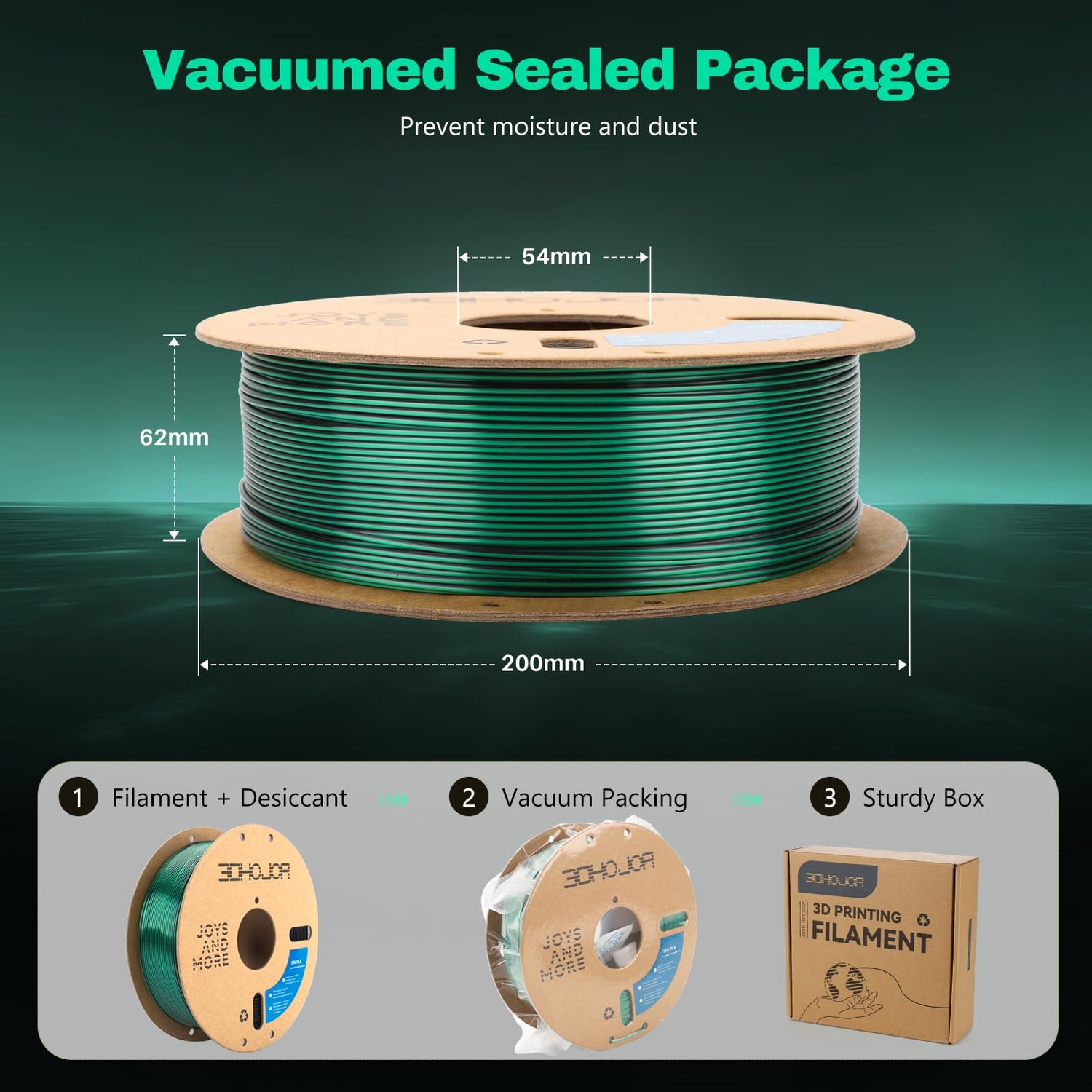 - 【Silk Dual Color PLA】You can get a gorgeous 3D printing surface. Shiny Silk Black Green combination of magic 1.75mm PLA filament, make the two sides of your print appear in different colors. Every inch has has two colors. This gives your prints not only a smooth and shinny appearance, but also a unique color pattern and effect.