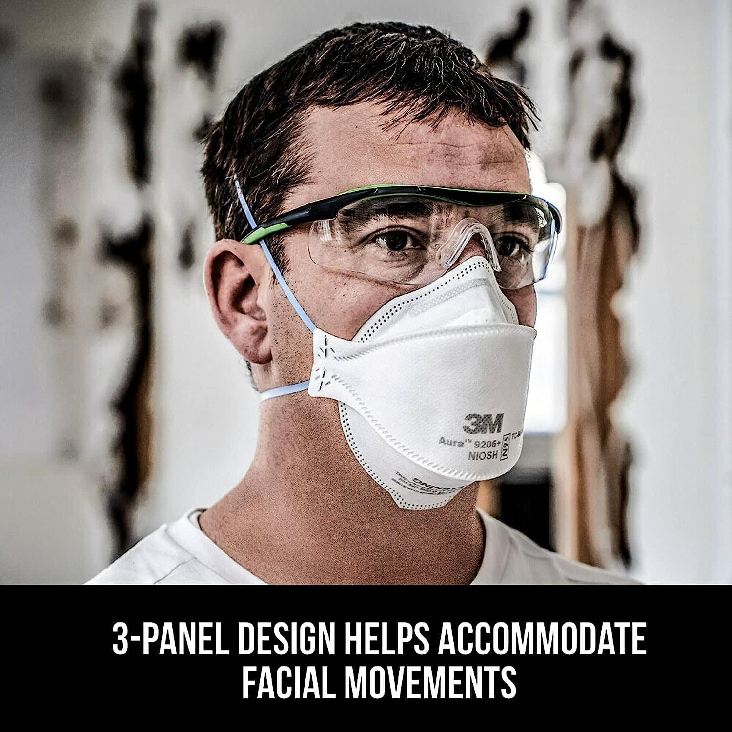 3M Aura Particulate Respirator 9205+ N95, Lightweight, 3 Panel Designed Helps Provide Comfortable and Convenient Respiratory Protection, 3-Pack