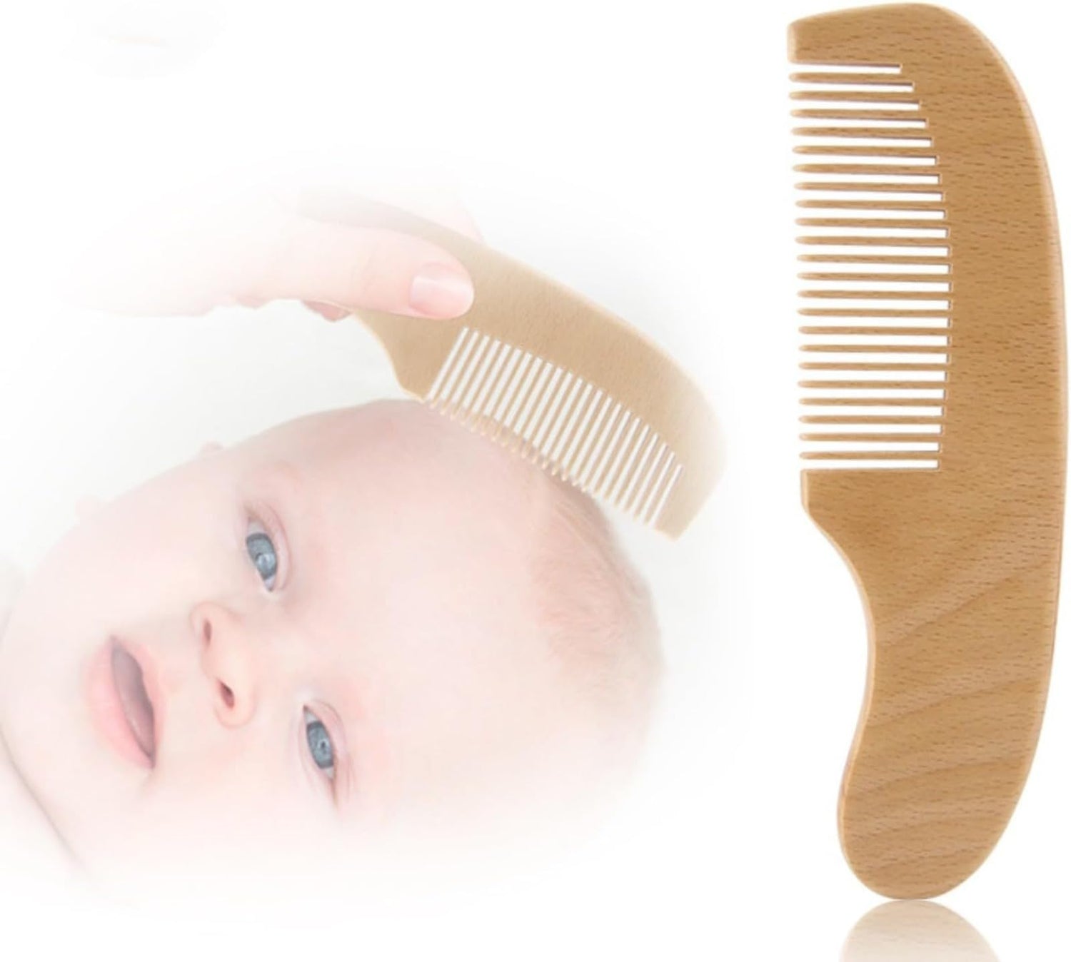 • NATURAL & SAFE MATERIALS: Made from high-quality organic wooden materials, this baby hairbrush and comb set is gentle on your baby's delicate scalp and hair.Features: soft hair, baby combing tool, cozy gray color. Very soft small wooden comb to protect your baby's scalp skin.