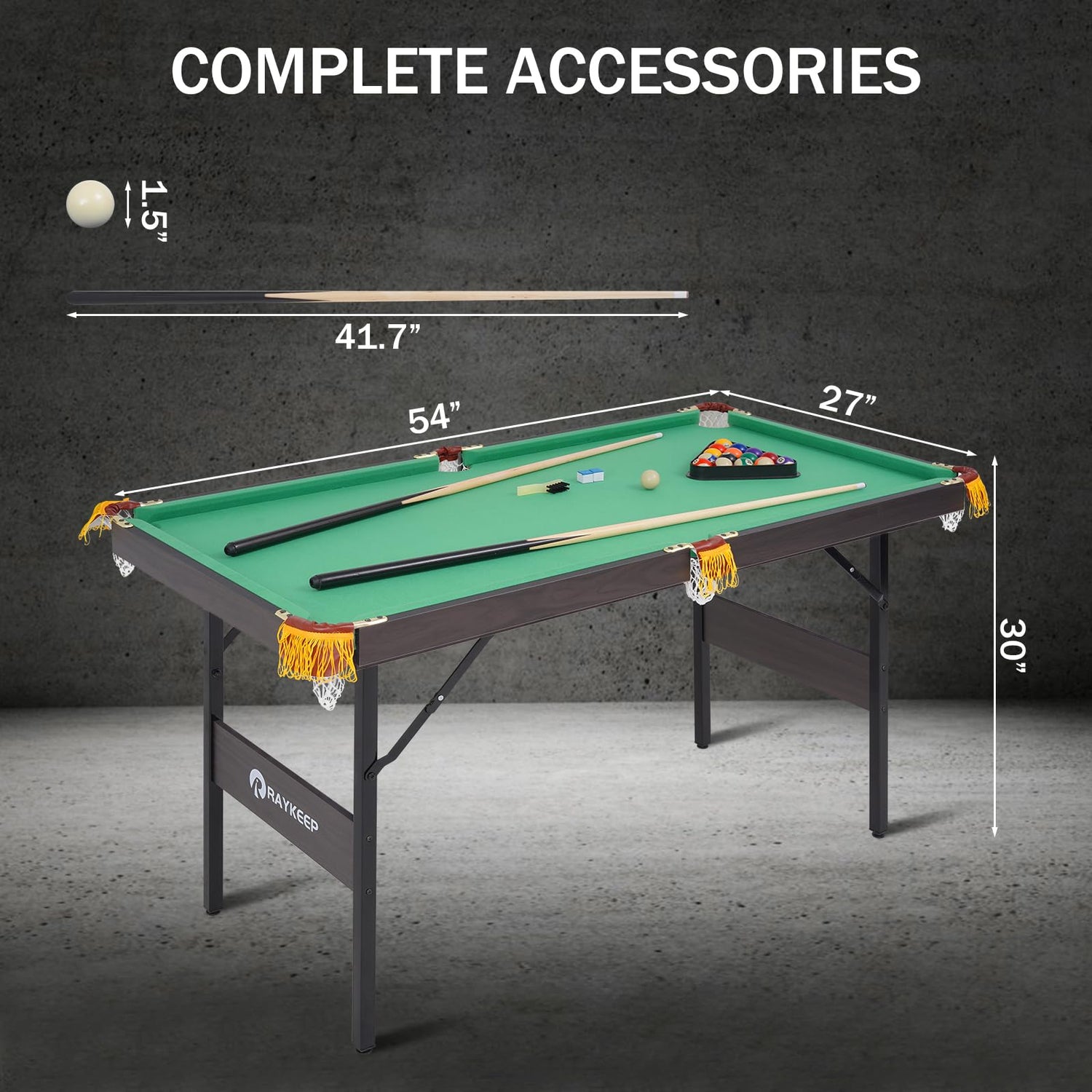 4.5Ft Foldable Pool Table, 54" Portable Folding Billiard Table for Kids and Adults, Indoor Pool Arcade Game Table with 2 Cues, 16 Balls, Triangle, 2 Chalks for Family Game Rooms (GREEN)