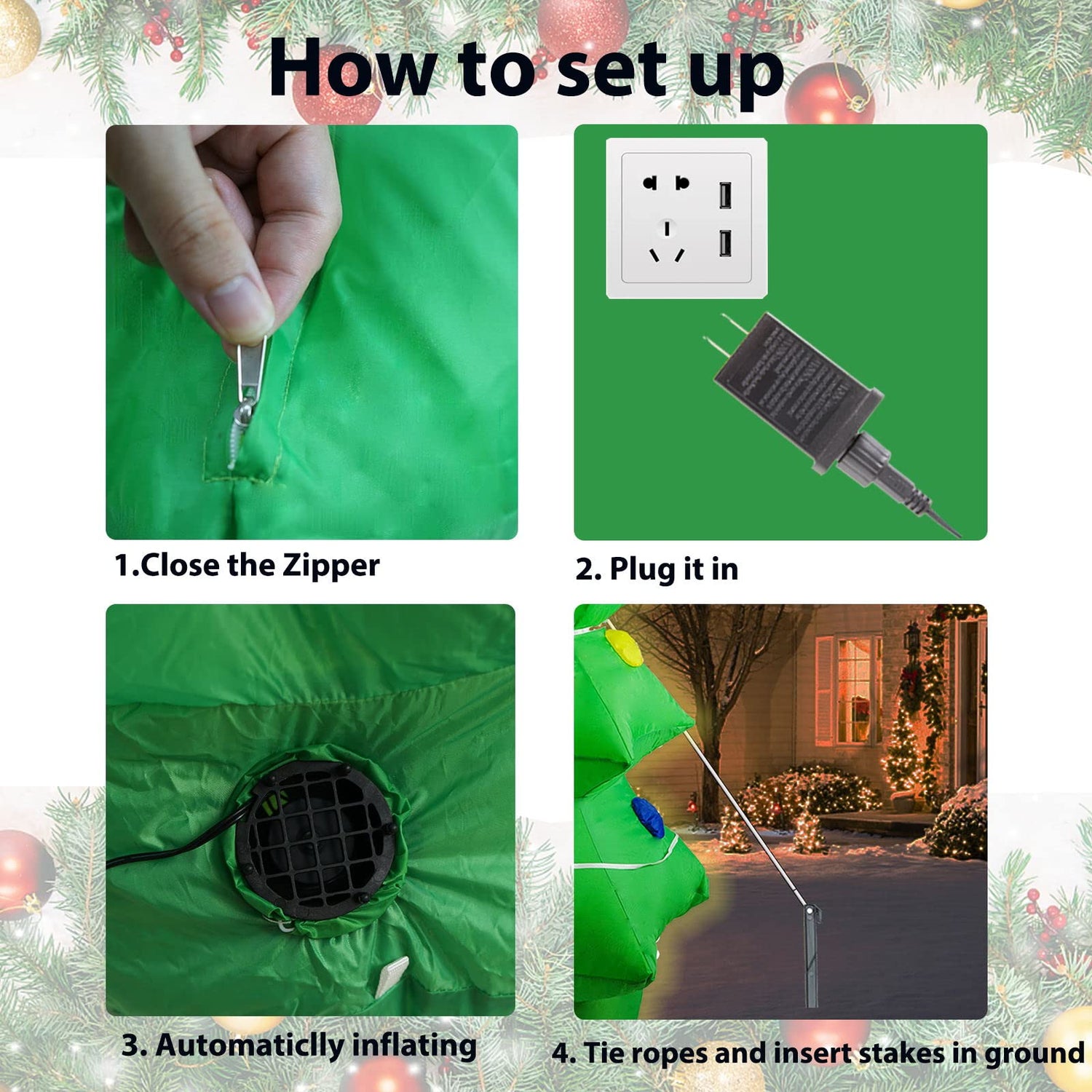 - Build-in LED Lights: There are 4 LED bright lights in Your Christmas Tree, More bright than other Inflatable tree. 2 ropes and 4 stakes to firmly fix it.