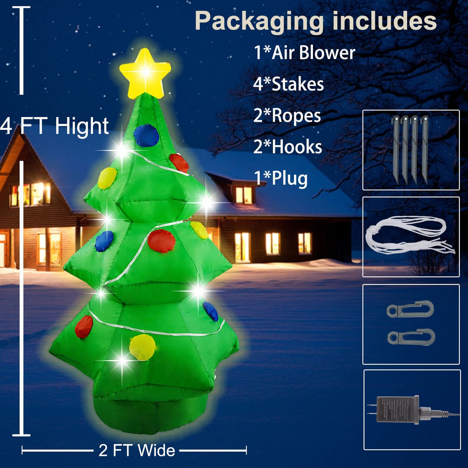 - Christmas Inflatable Tree comes with LED lights inside. 4 ft tall would be an adorable eye-catching addition for your kids.