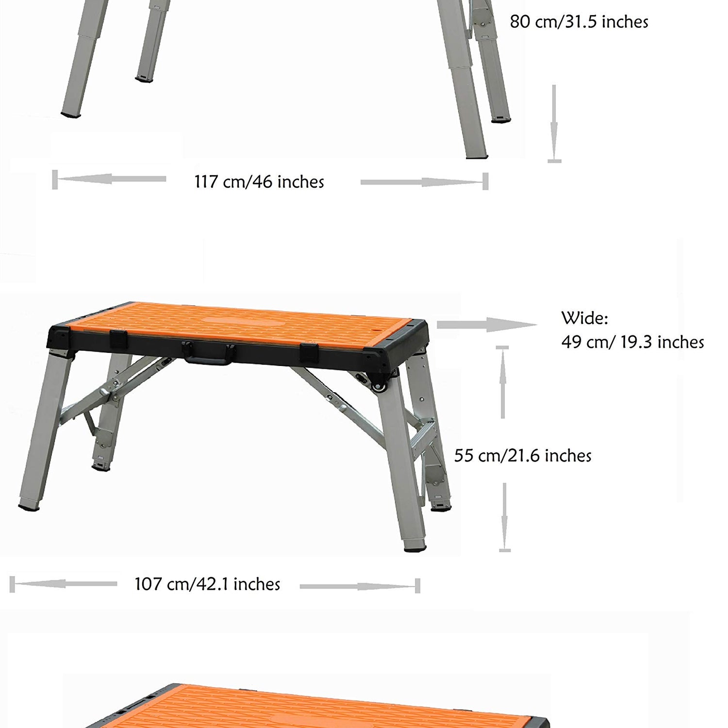 - ADJUSTABLE HEIGHT: Adjustable height legs can be extended, shortened, or collapsed to accommodate your work needs, from 21.6" to 31.5"