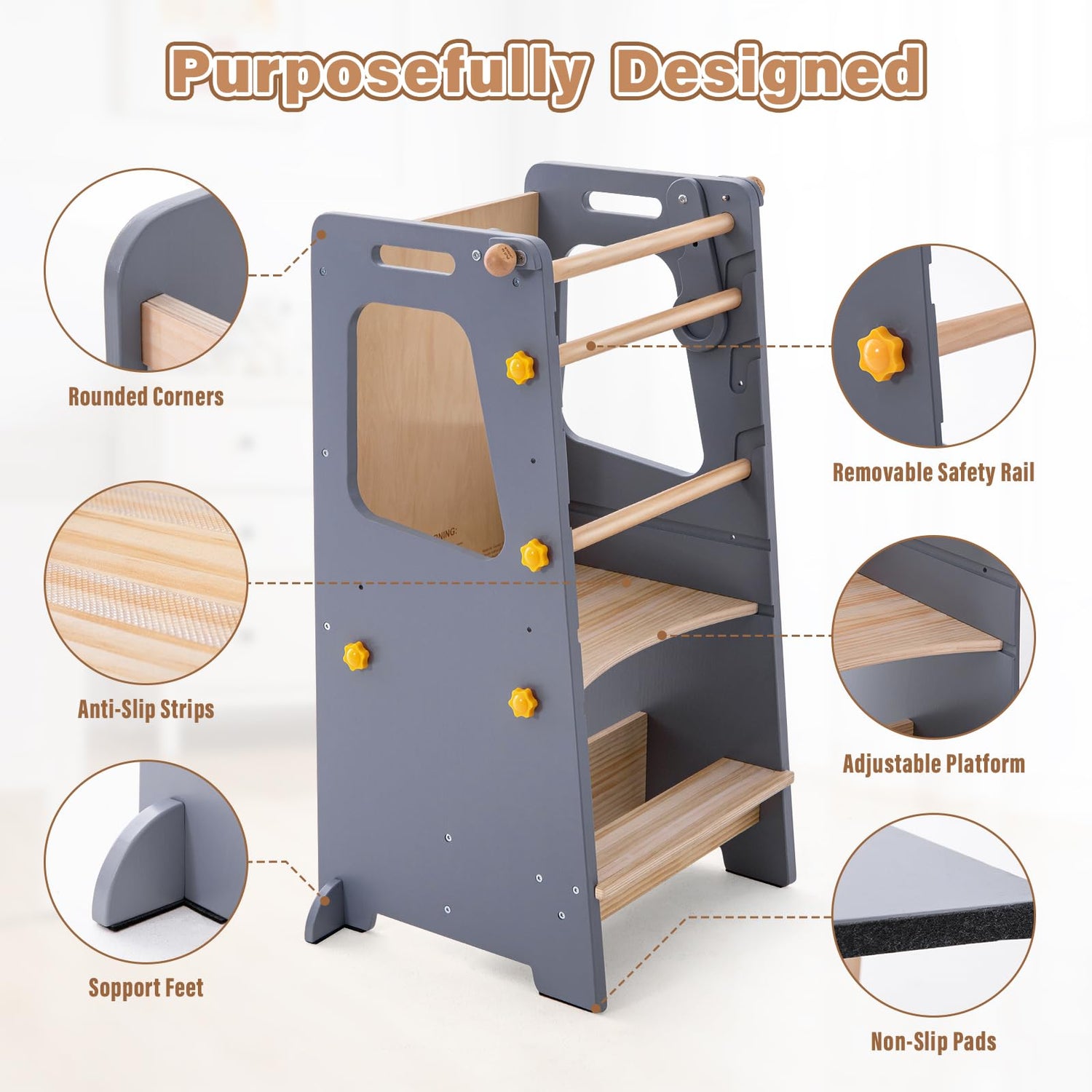 - 【Creative Magnetic Easel】:Unleash your child's artistic potential with the integrated magnetic whiteboard on the back of our learning standing tower. Perfect for drawing, writing, and interactive play, this easel provides endless opportunities for self-expression and fun. Watch as your little one's imagination flourishes, making every moment a chance for artistic discovery and joyful learning.