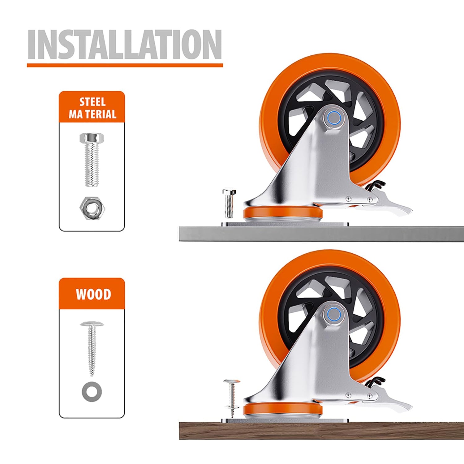 - EASY TO ASSEMBLE: Our 4 inch caster wheels come with 16 bolts, 16 nuts, 16 screws, 16 washers, and 1 pair of gloves for easy and convenient mounting for a variety of different needs.