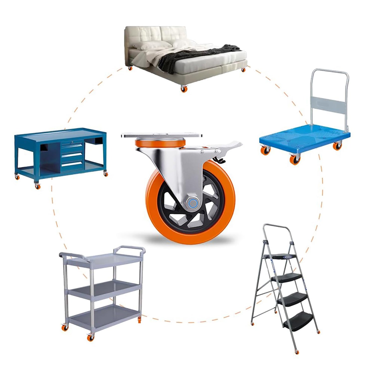 - WIDELY USED: 4 inch casters can be used both indoors and outdoors, such as carts, workbenches, toolboxes, light machinery, cabinets, brackets, furniture, shelves, and other items commonly found in workshops, garages, kitchens, and offices.