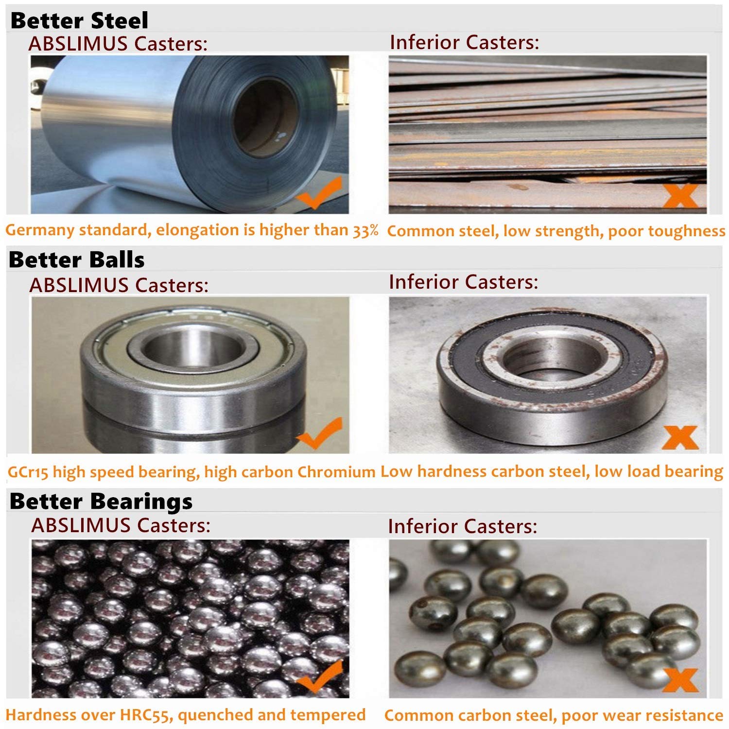 - 💎【Easy Assembly & Maintenance】Designed for quick and hassle-free assembly, our caster wheels come with all necessary hardware included. Plus, they require minimal maintenance and are easy to clean, ensuring long-term performance and reliability. Whether you're a DIY enthusiast or a professional, you'll appreciate the ease of use and low-maintenance design of these caster wheels. Trust in ABSLIMUS, a reputable brand known for its exceptional quality and customer satisfaction. No questions asked – your satisfaction is our guarantee!