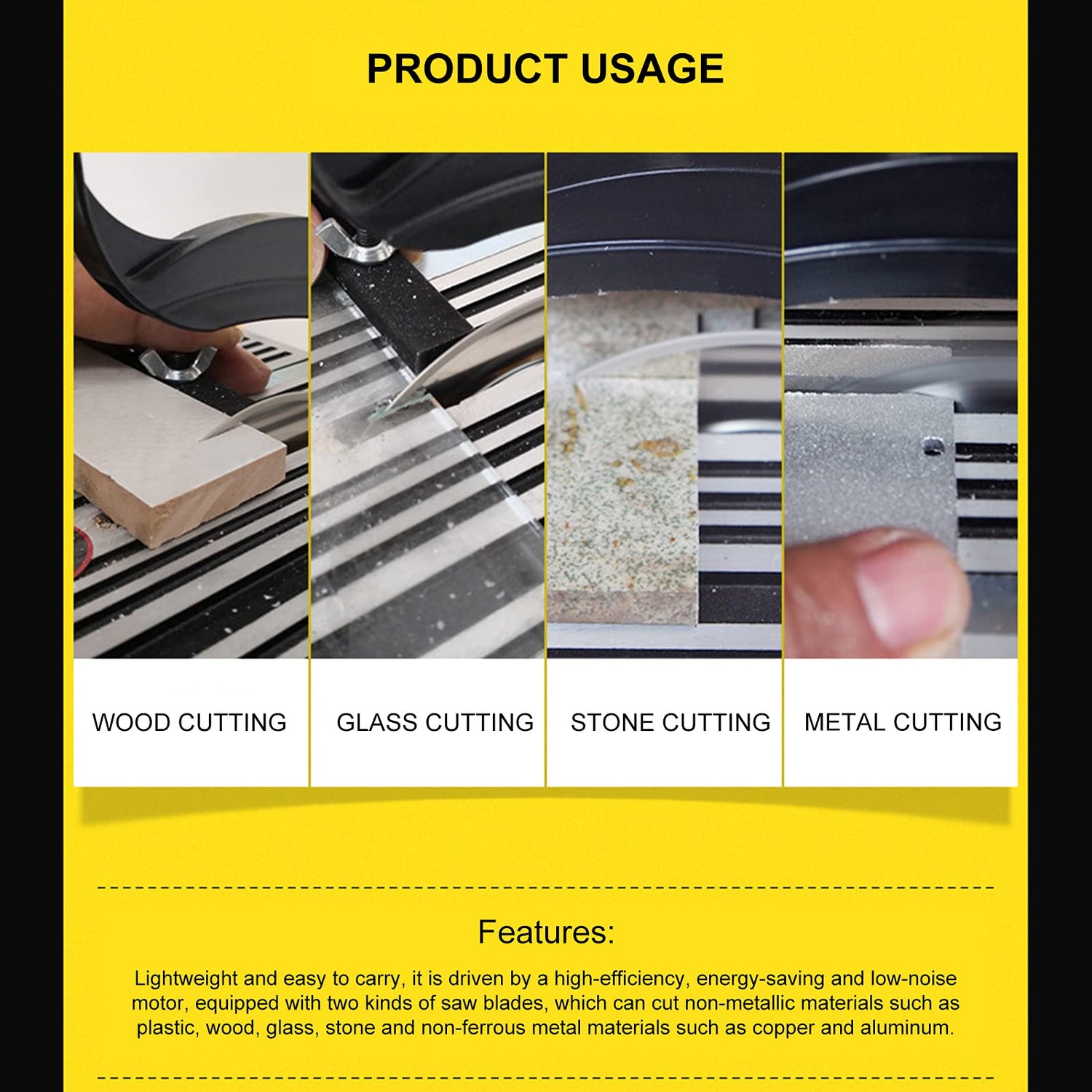 - 【THREE TYPES SAW】Come with 3 different saw blades, alloy saw blade for wood, copper aluminum cutting; resin saw blade for iron stainless steel; emery saw blade for glass, tiles stone. Diameter of the saws are 100mm (about 4 inch).