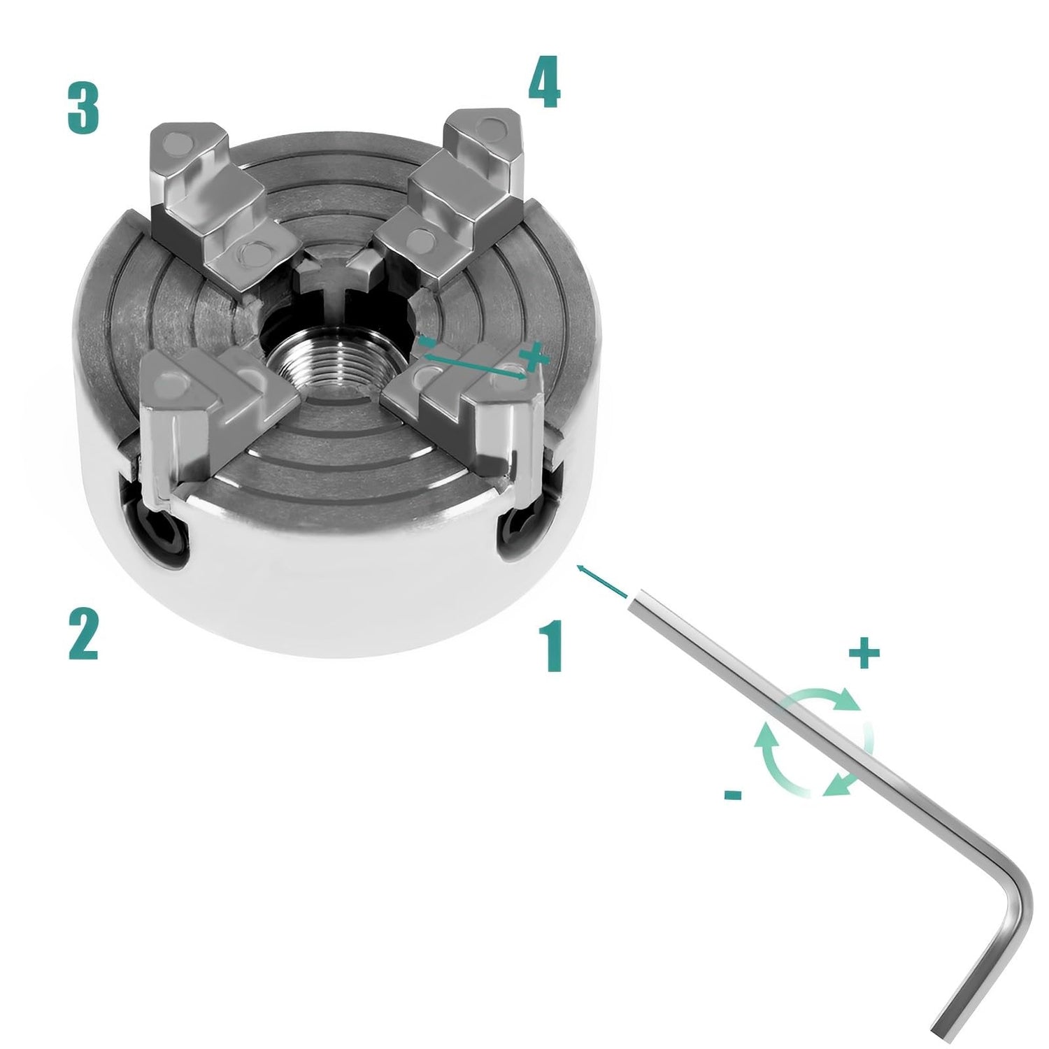 4-Jaw Lathe Chuck Kit, Mini Lathe Chuck with Connecting Rod and Wrench, Zinc Alloy Self-Centering Wood Lathe Chuck, Independent Reversible Jaw, Sturdy Mini Metal Lathe Chuck Wood Turning Chuck