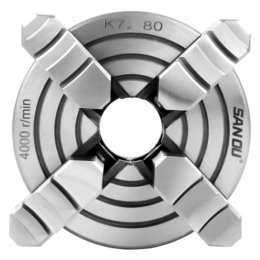 4 Jaw Lathe Chuck, Metal Lathe Chuck Independent with Reversible Jaw K72-80 Turning Machine Replacement Parts 4000r/min