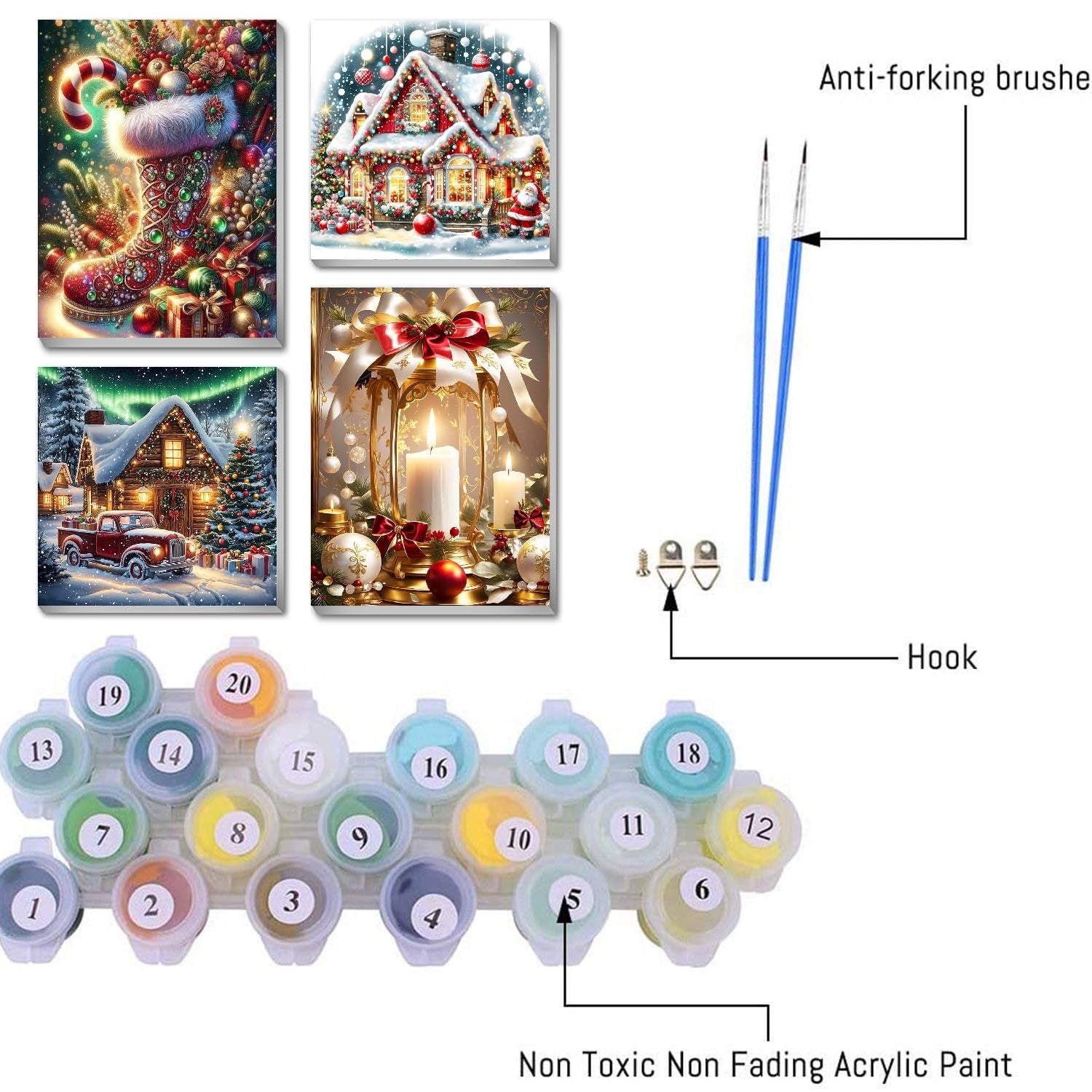 4 Pack Christmas Paint by Numbers Kit for Adults Beginner with Framed,Winter Easy Adult Paint by Number Kits on Canvas DIY Painting for Beginners Art by Numbers for Home Wall Decor 10x12-10x10 Inch