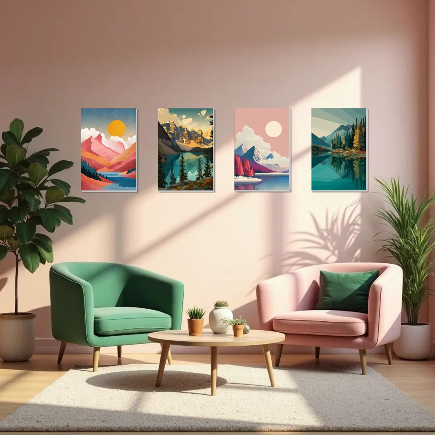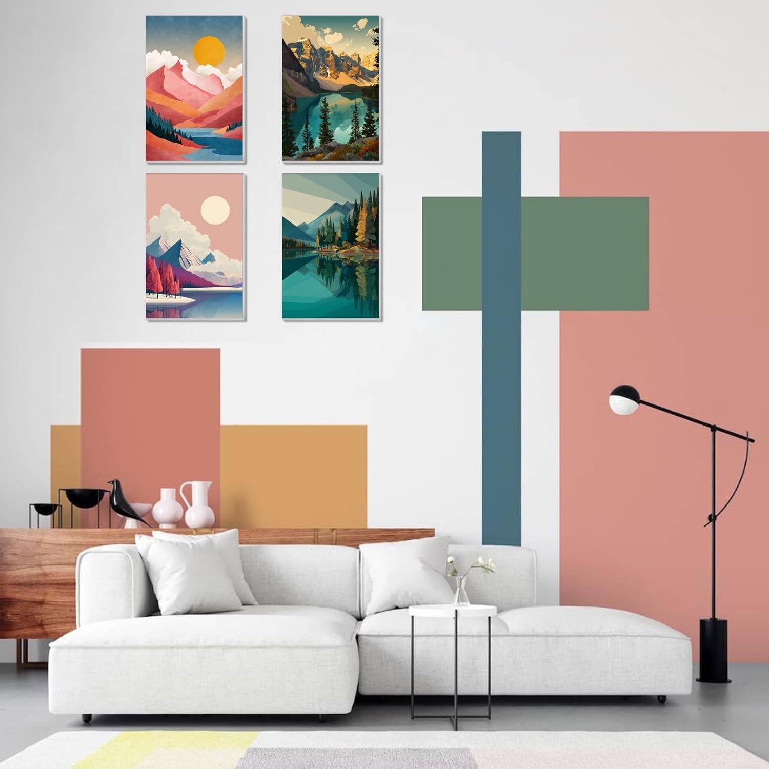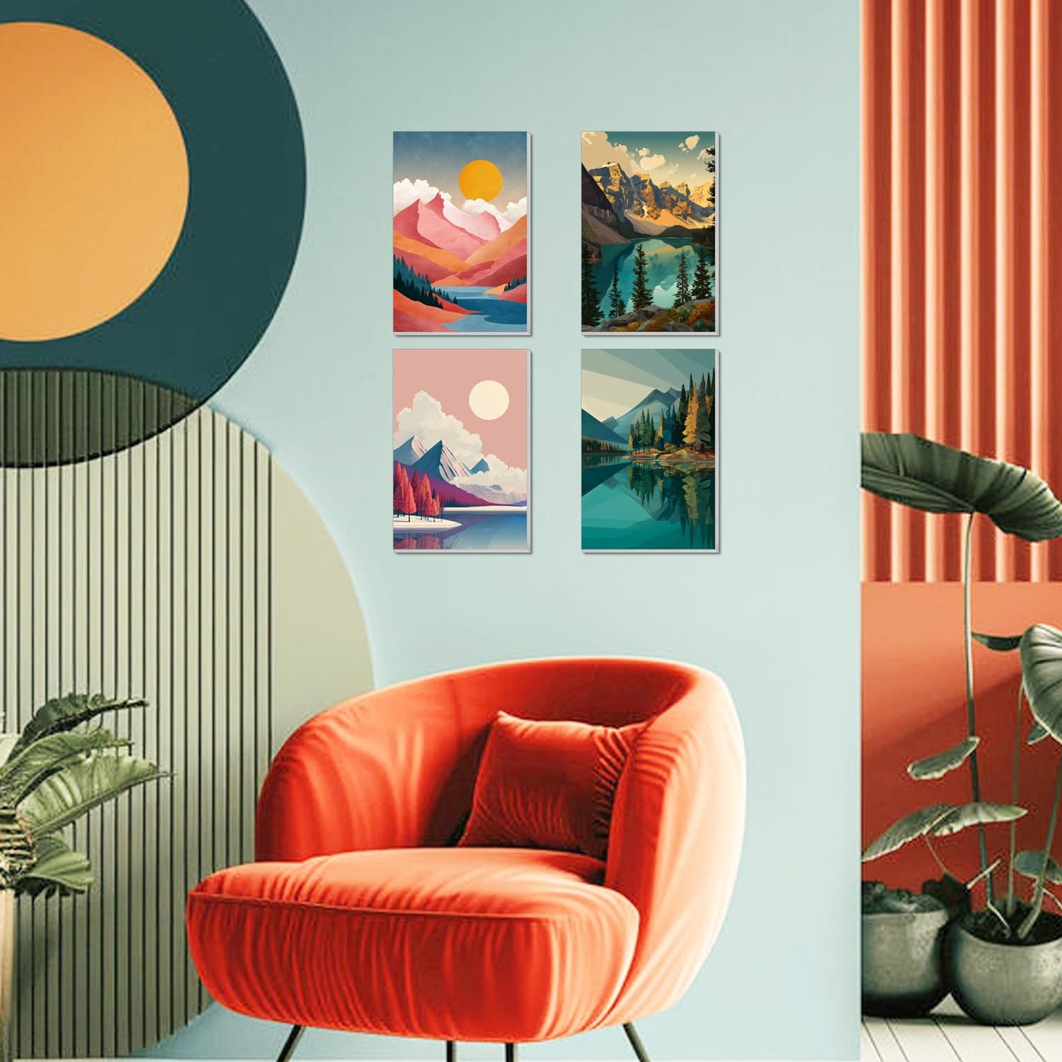 4 Pack Framed Paint by Numbers Kit for Adults Beginner Canvas Painting by Numbers for Adults Landscape Easy Adult Paint by Number Kits with Frame Mountain Watercolor Painting by Number 8x12 Inch