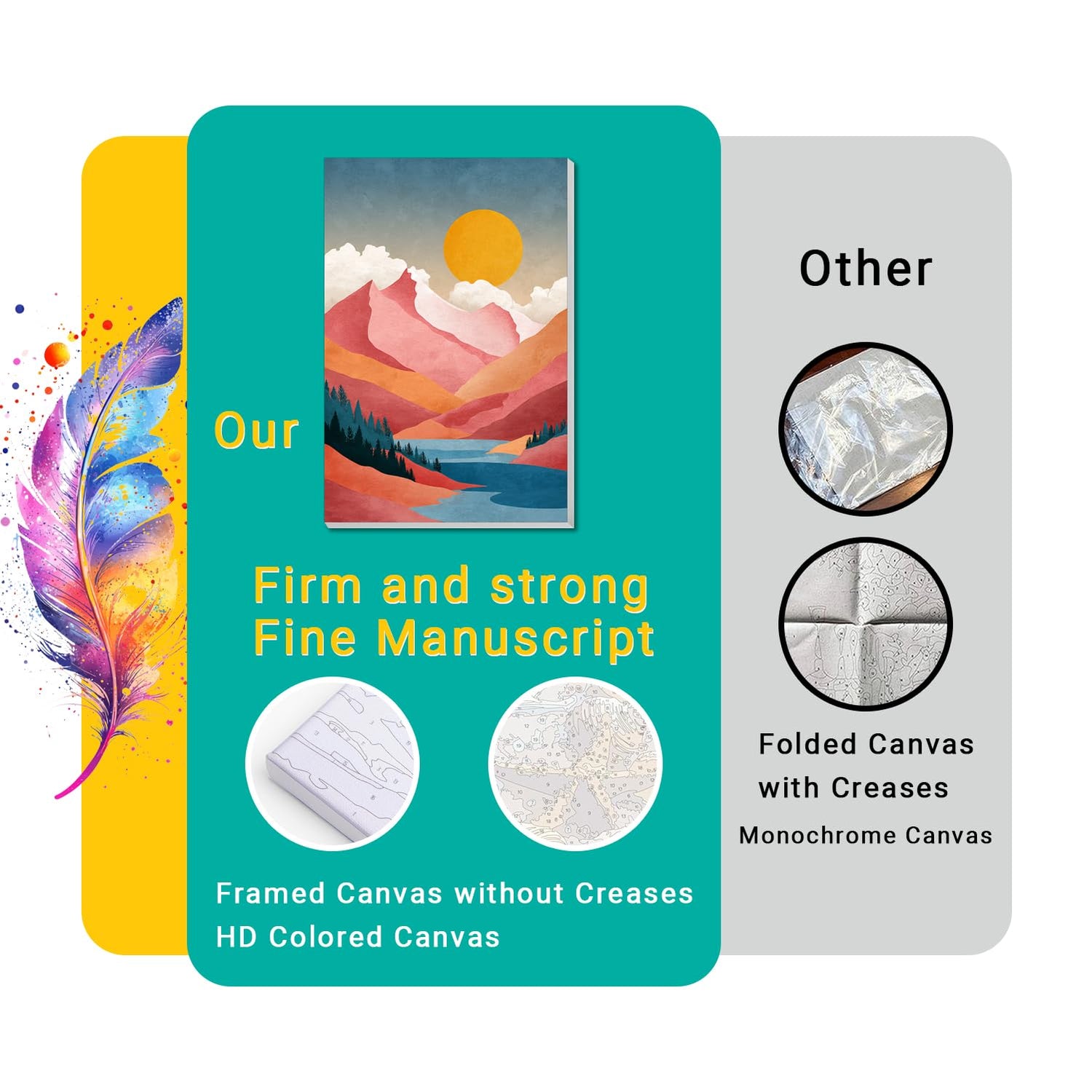 - FRAMED HD COLOR CANVAS: Unlike ordinary canvas, we use special HD color canvas. Colored canvas is easier to distinguish between digital areas, and long-term painting will not cause eye fatigue. The canvas is framed and not easy to wrinkle. You don't need to buy a frame separately to hang your work where you want.