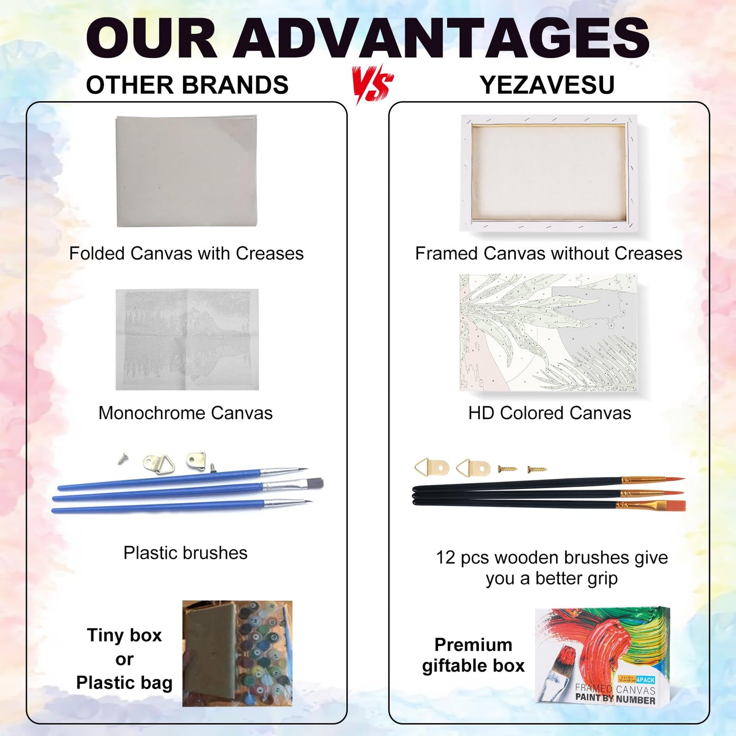- After-sales service: We attach great importance to every customer's experience, if you have any questions about Yezavesu paint by number with frame, please contact us and we will solve the problem within 24 hours