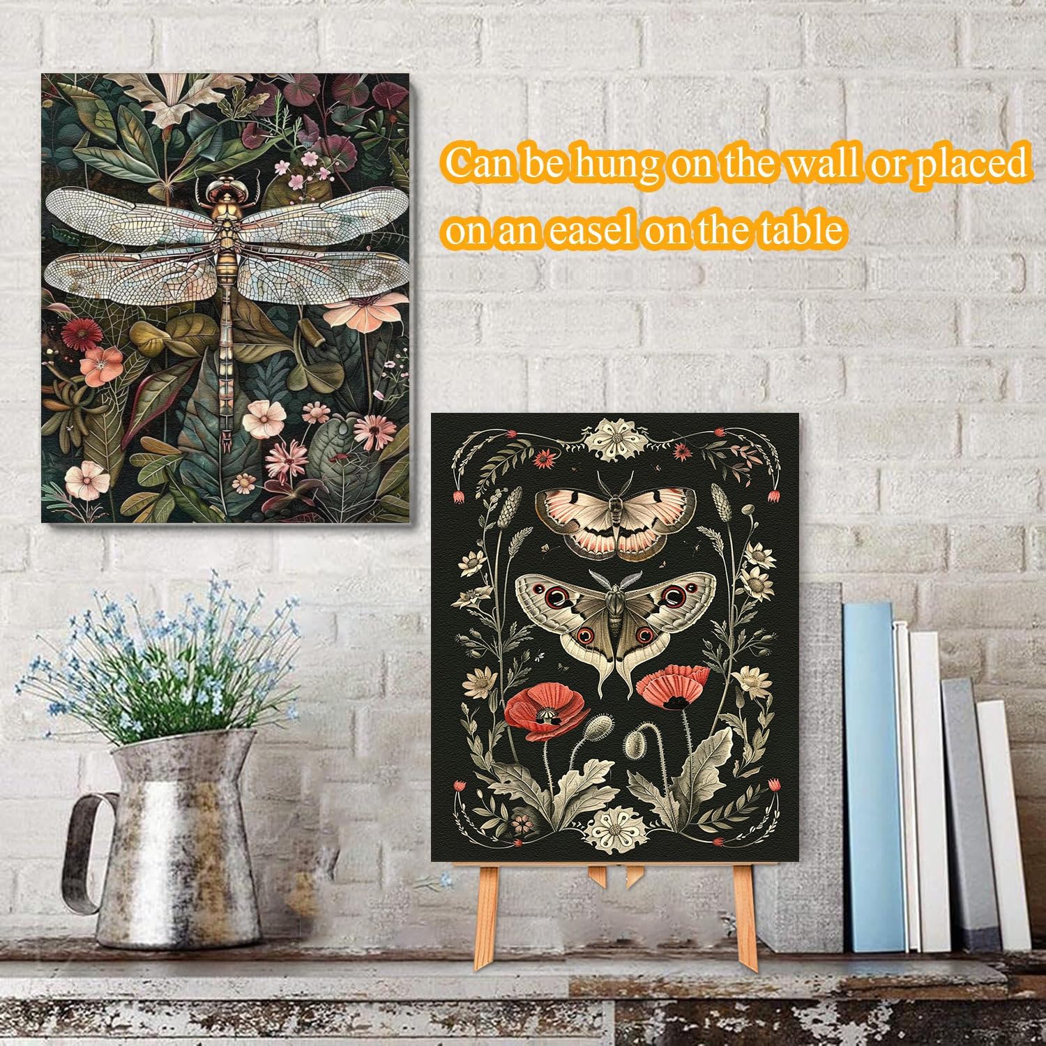 4 Pack Insect Paint by Numbers Kit for Adults Beginner with Frame,Dragonfly Moth Bee Butterfly Paint by Number with Wooden Easel DIY Landscape Adult Paint by Number Kits for Home Decor 9x12inch