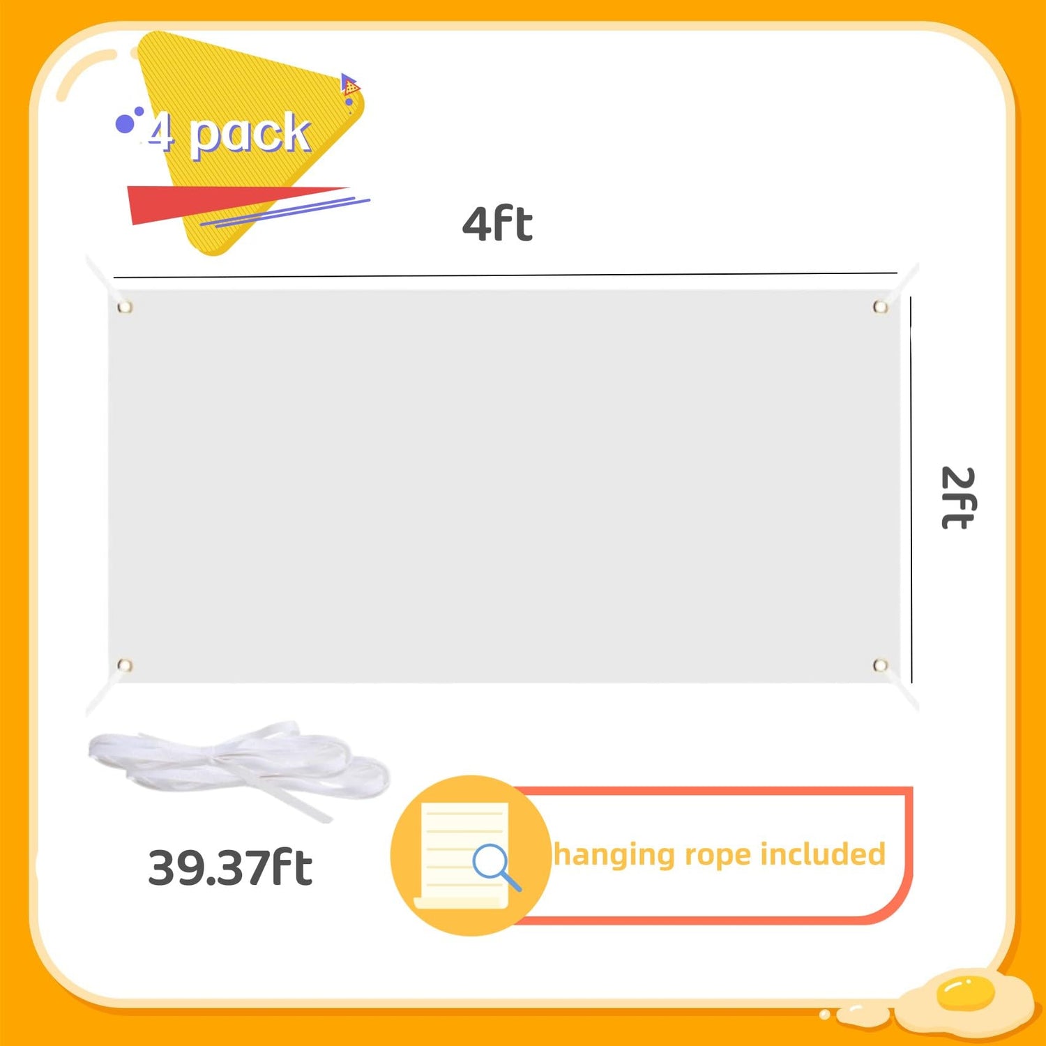 • 【2 x 4 Feet Blank Flag】Package contents: 4 packs large 120 x 60cm (4x2ft) Blank flag with 39.37ft long rope to help you fix this banner anywhere you want.