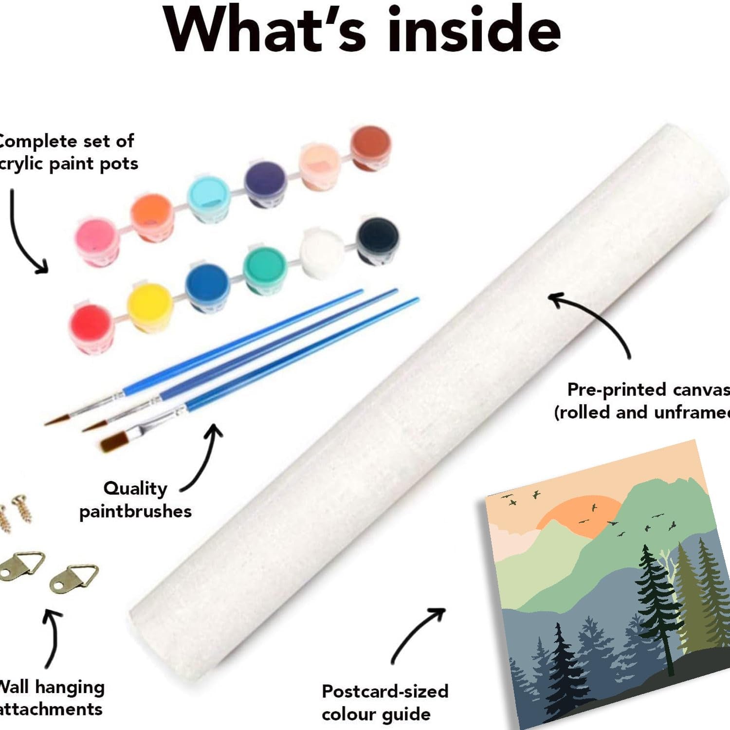 - 【Superior Quality Components】Our kit includes high-quality brushes of varying sizes,crisply printed canvas,ample paints,and hooks for display.