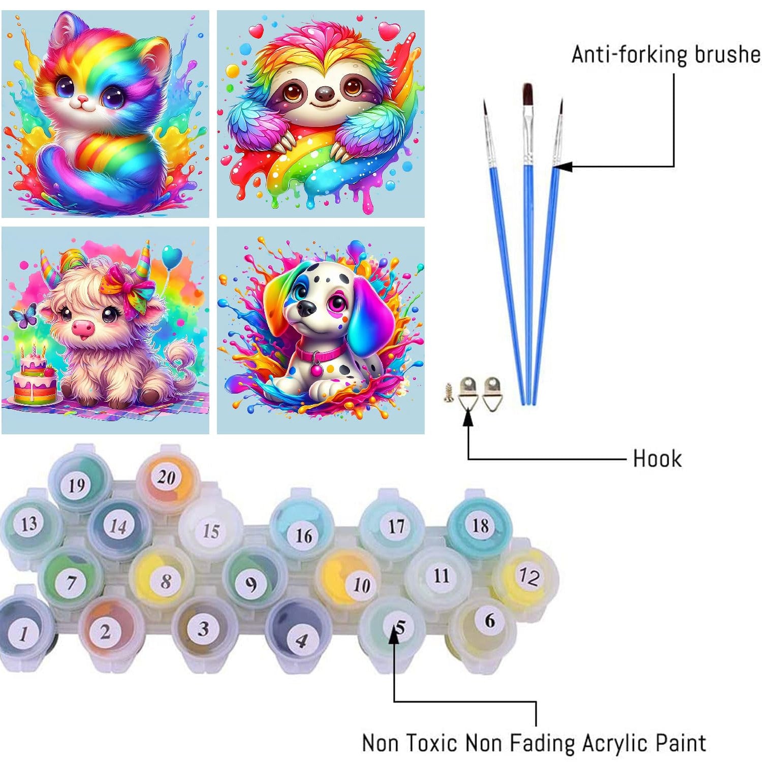 Details: 4 Pack Paint by Numbers 8x8 inch - Cute Animals Paint by Number for Kids Ages 4-8-12,Easy DIY Acrylic Oil Painting Kits on Canvas for Children Girls Boys Gifts