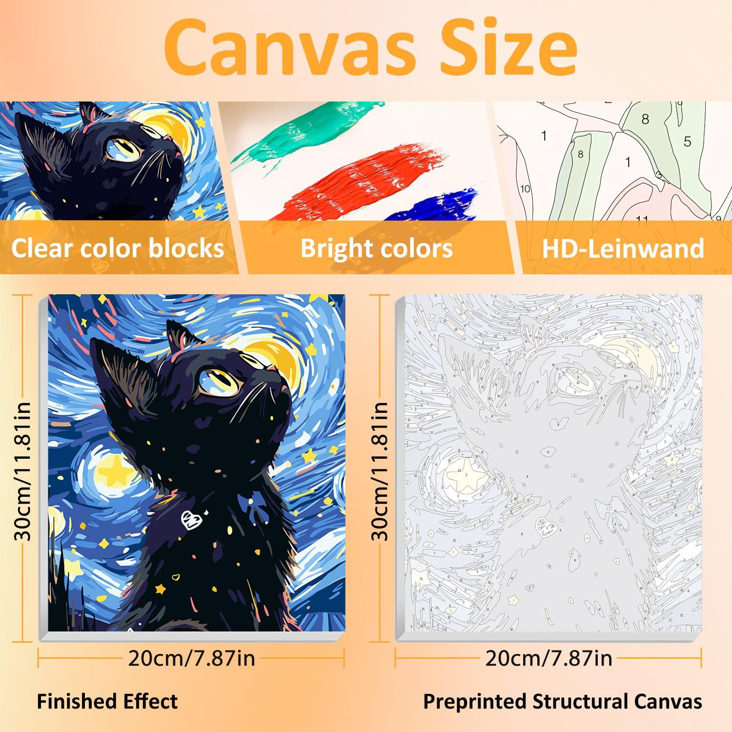 - 【HD Color Canvas】 Our 4 pack cat paint by numbers uses HD color canvas, which is different from other monochrome canvases. Our paint by number areas are easier to distinguish and paint is easier to adhere to them. The color canvas can prevent eye fatigue and make painting easier.