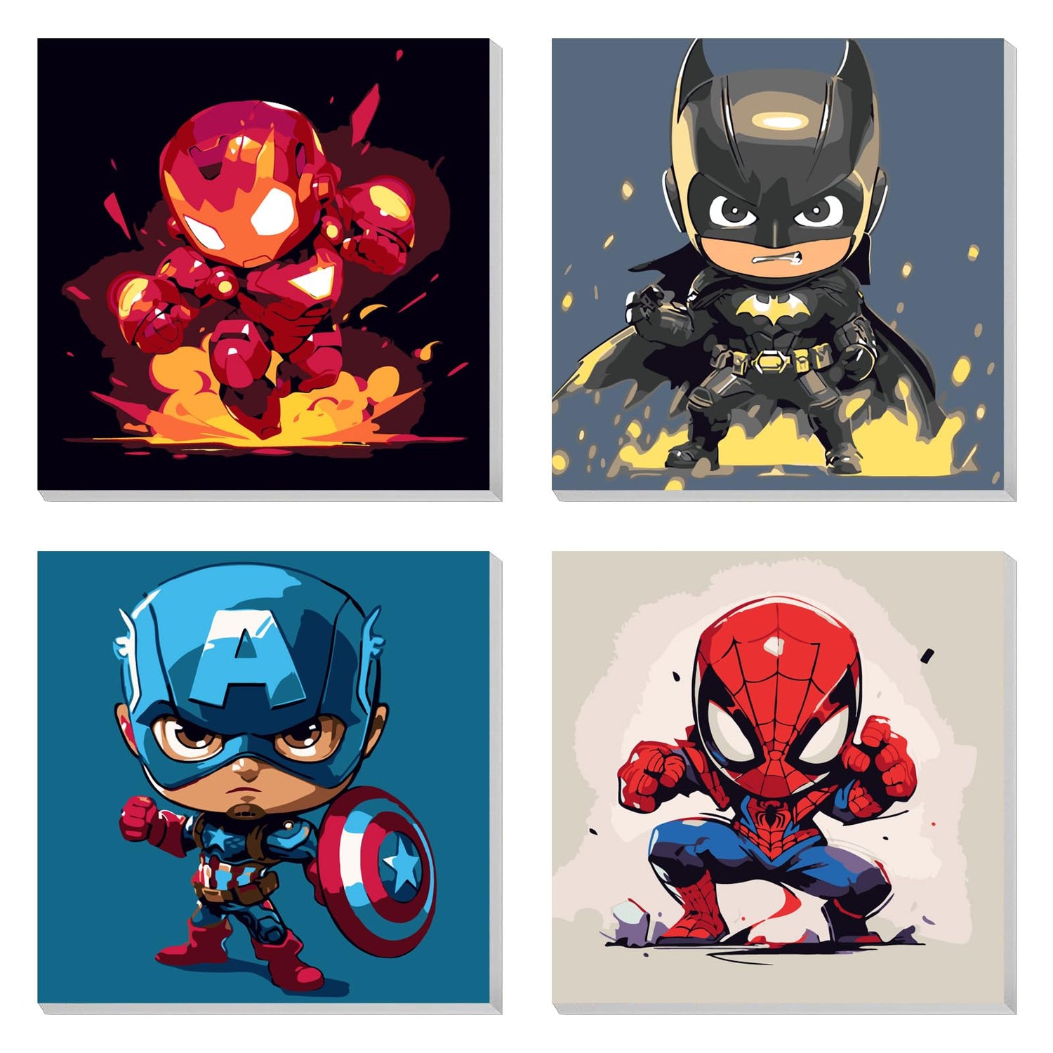 4 Pack Paint by Numbers Kit for Kids Paint by Number Kits Age 4-8 Painting Canvas for Kids Ages 8-12 Boys Framed Canvas Painting by Numbers Anime Drawing Kit Color by Numbers Kit for Kid 8x8 Inch