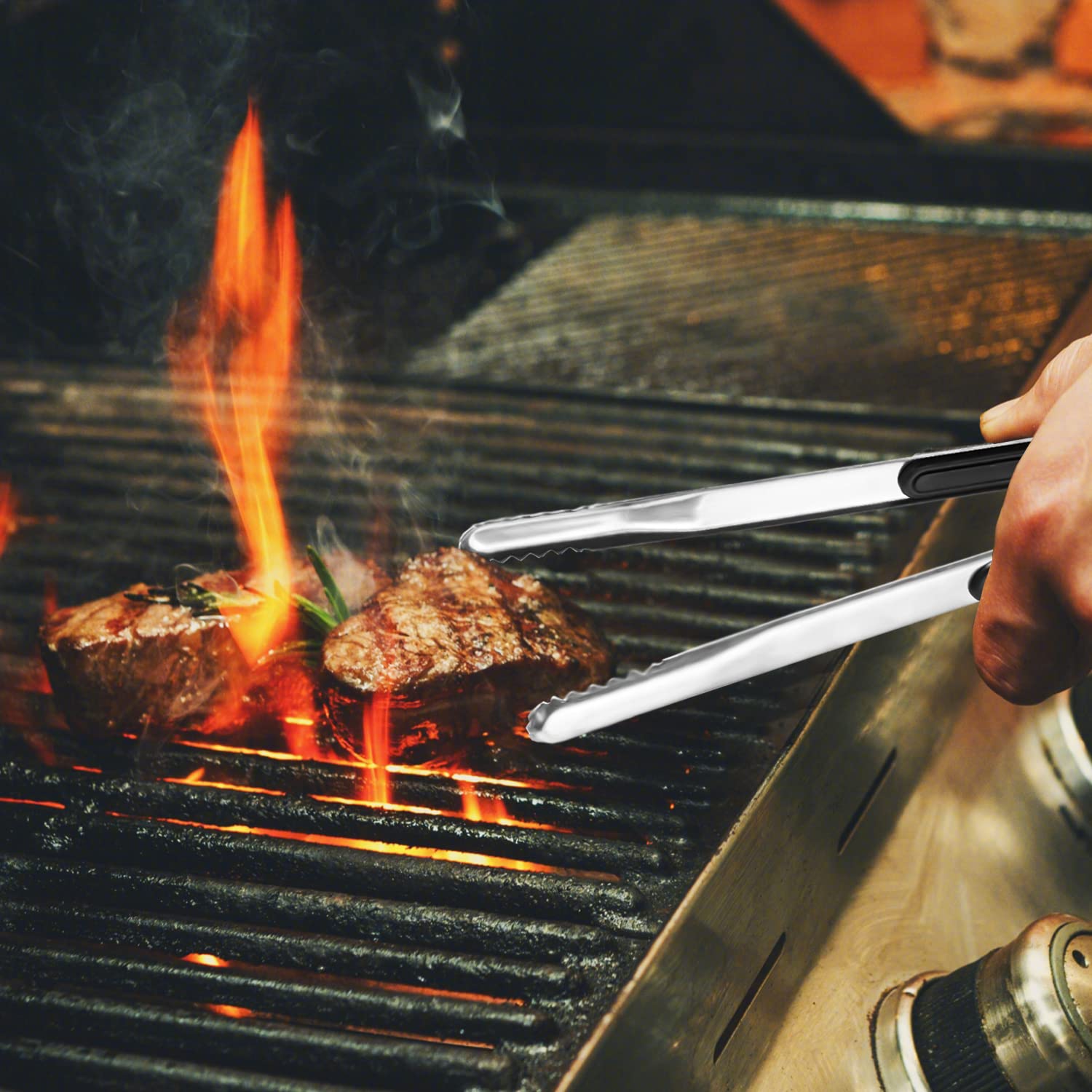 - Premium Stainless Steel:Made of high quality stainless steel, Durable and sturdy, ABS plastic handle provide heat resistance function, the edge of the kitchen grill tongs is rounded and smooth,light weight and easy to use.