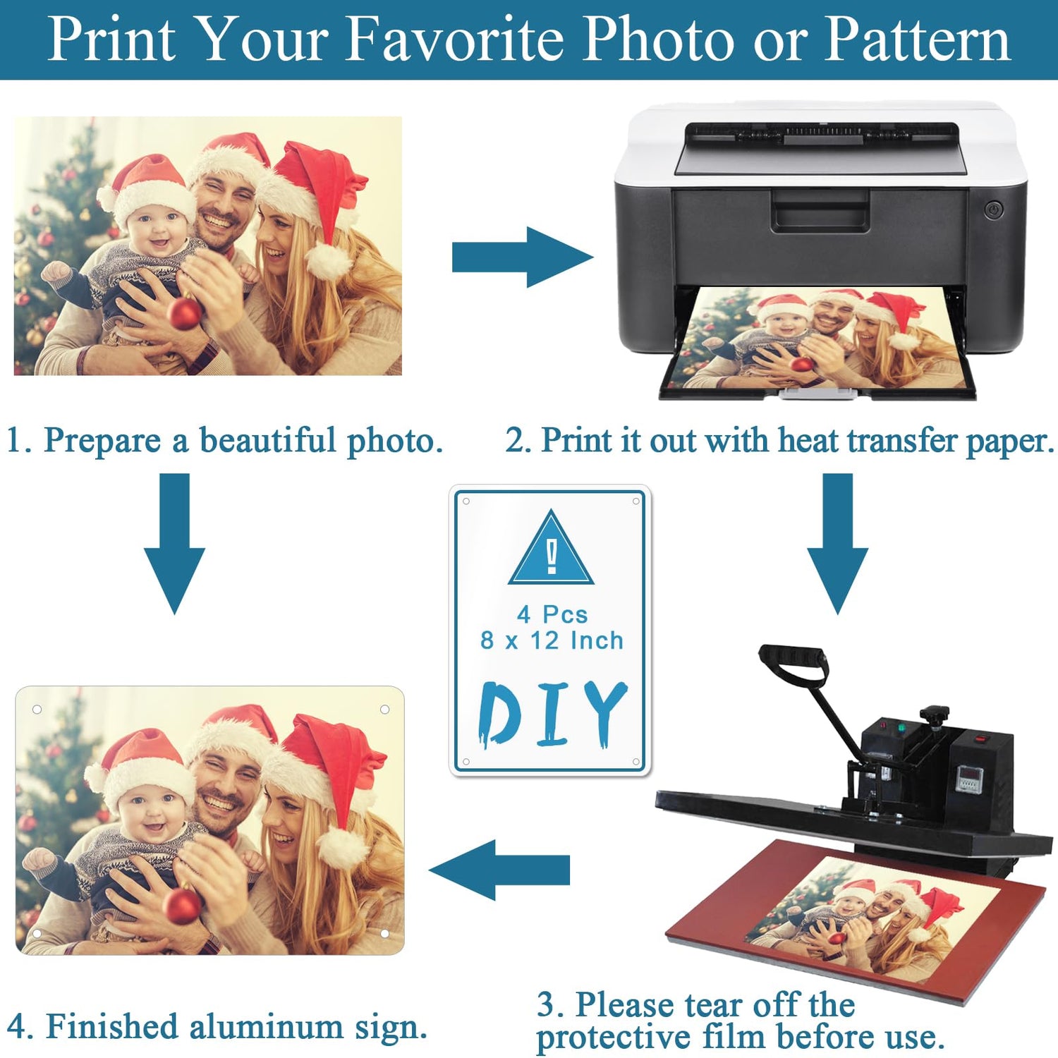- High Quality Material: The sublimation photo blanks are made of aluminum plate which is not easy to bend or break. Each sublimation sign blank measure is 8x12 inch / 20x30 cm, or 10x14 inch / 25.4x35.6 cm, (Choose the size you need) and the thickness is 0.45mm. It is the best size for thermal transfer printing, large enough for DIY decoration needs.