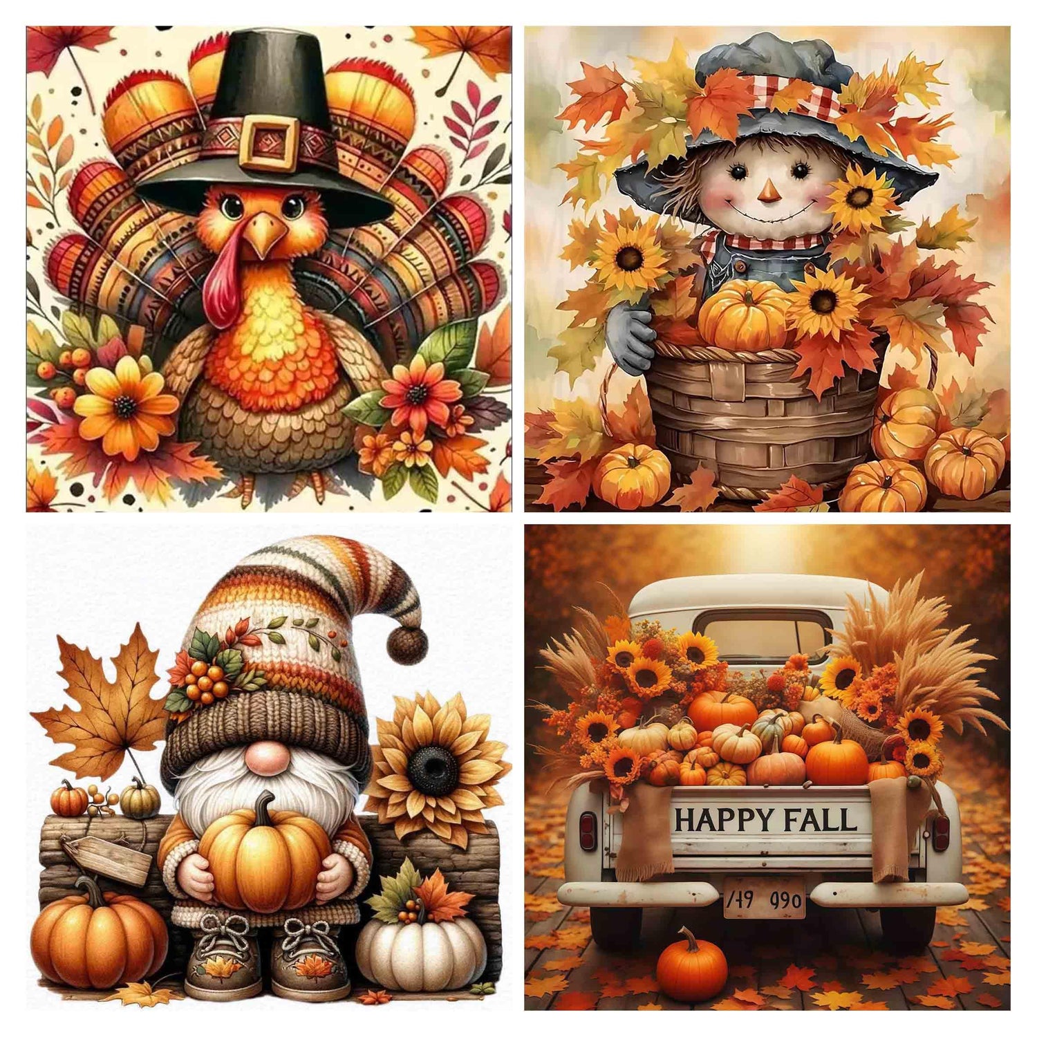 4 pack Thanksgiving Day Diamond Art Kits for Adults Beginners,Fall Turkey Pumpkin Diamond Painting Kits for Adults,5D Full Drill DIY Diamond Dot Gem Art Kit Wall Home Decor Arts Craft 12x12 inch