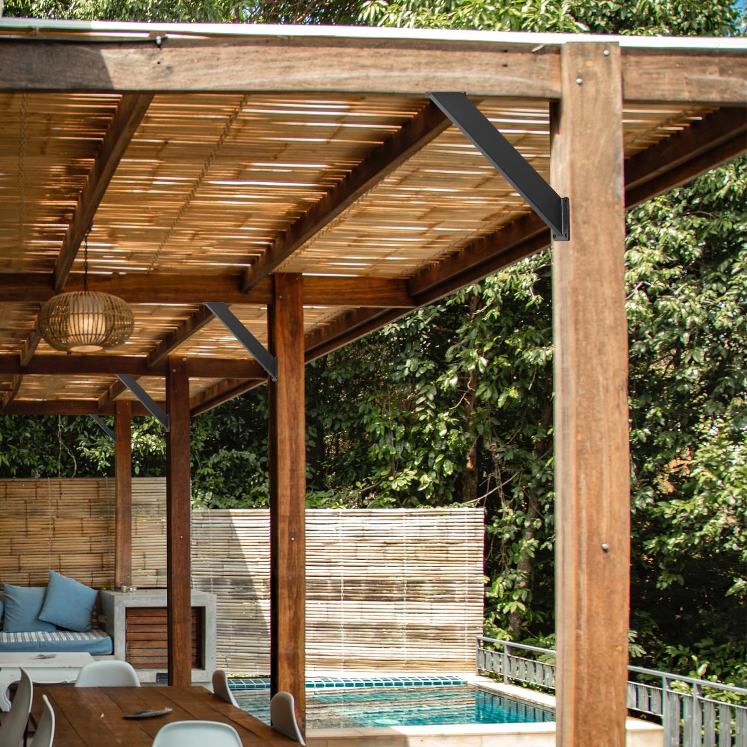 - Widely Used: angled pergola support brackets add structural support and provide a reliable and secure connection for wooden structures such as gazebos, tree houses, decks, cabins and patios.