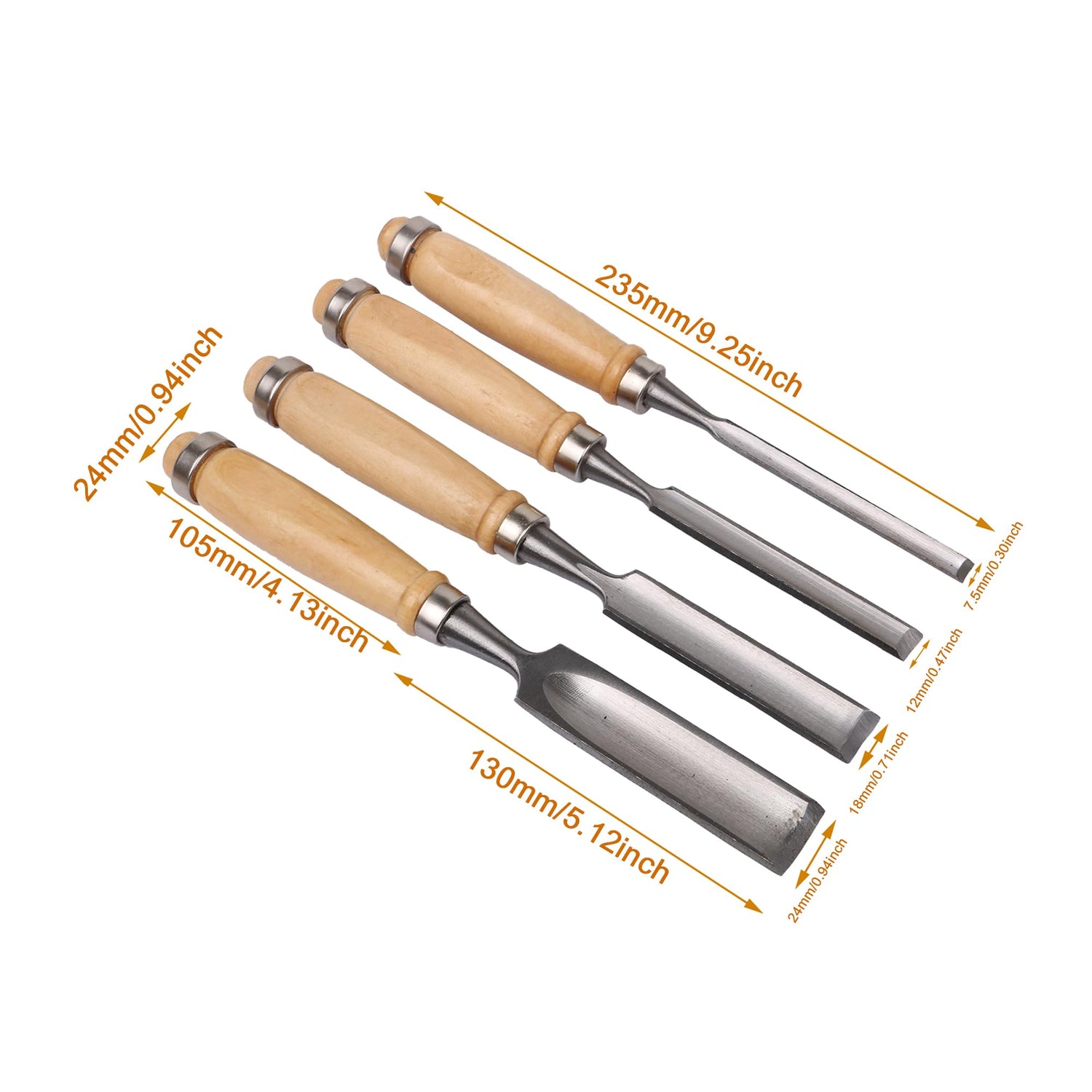 - Length: 240mm, chisel body model width are: 6mm, 12mm, 18mm, 24mm each.