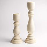 - Package includes: 4 wooden candlesticks, 2 sizes.