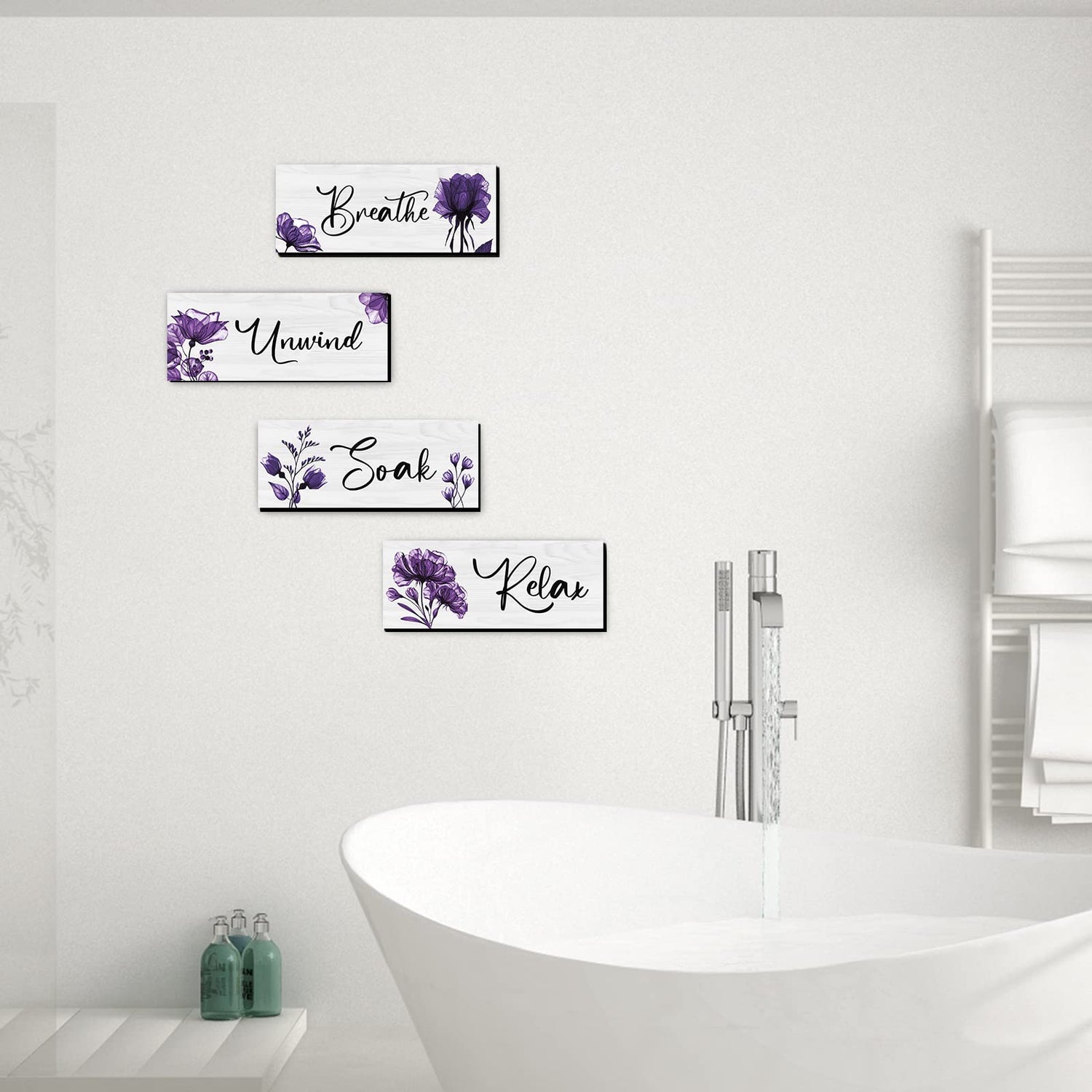 4 Pieces Bathroom Wall Art Rustic Farmhouse Bathroom Wall Decor Sign Relax Soak Unwind Breathe Wood Hanging Sign for Home Spa Bathroom Laundry Decor