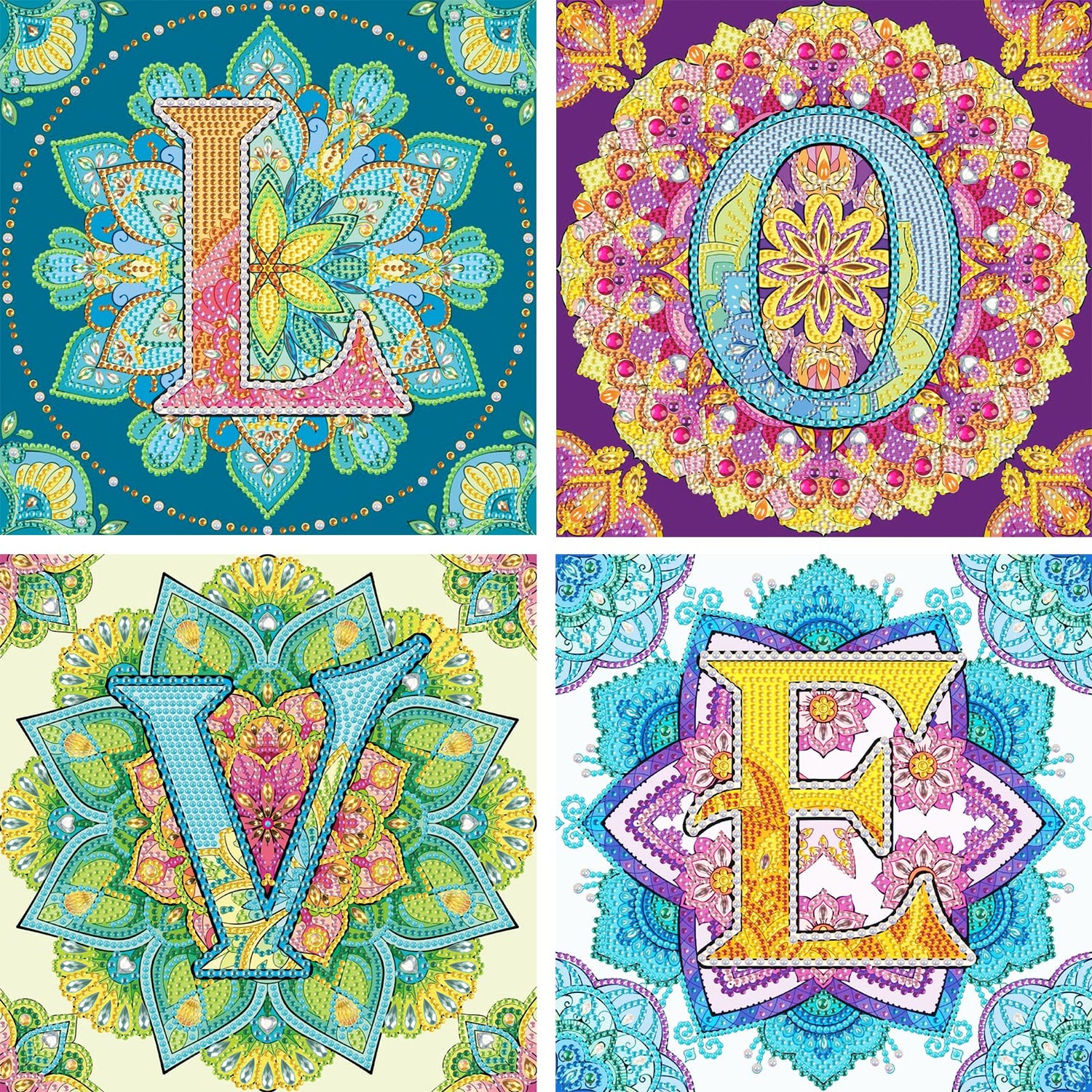 4 Pieces Love Alphabet Diamond Painting Kits, Special Shaped 5D Partial Drill DIY Crystal Diamond Art for Adults, Home Wall Decoration, Valentine’s Day Gifts, Mosaic Craft, 12x12 in