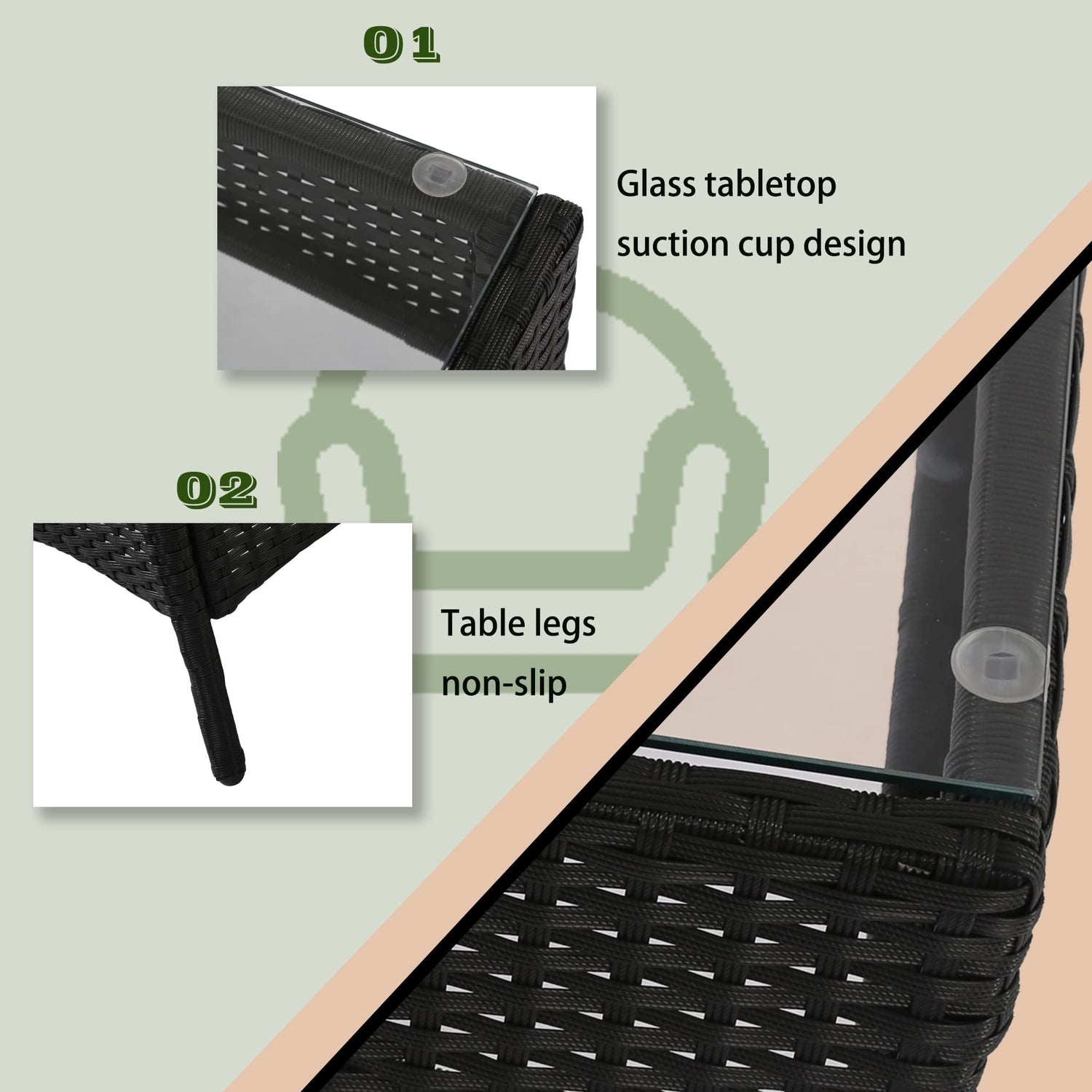 - Multifunctional Coffee Table: Each outdoor furniture set is equipped with a central coffee table with shatter-resistant tempered glass, which is used to display decorations, place food and drinks, etc.