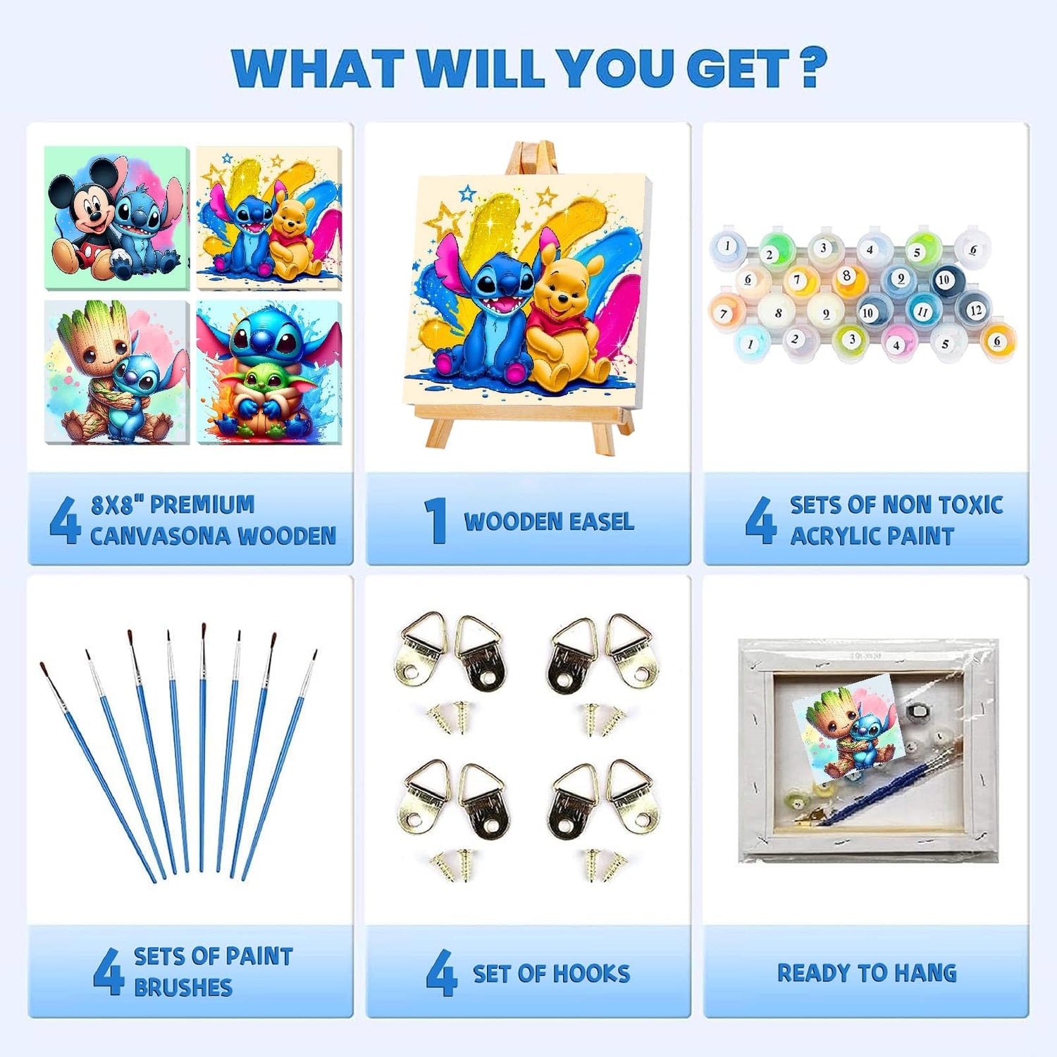 4 Ps Paint by Numbers for Kids with Framed Canvas,Cartoon Paint by Numbers for Kids Ages 8-12 with Wooden Easel,Easy Acrylic Painting Kits for Home Wall Decor 8X8 Inch